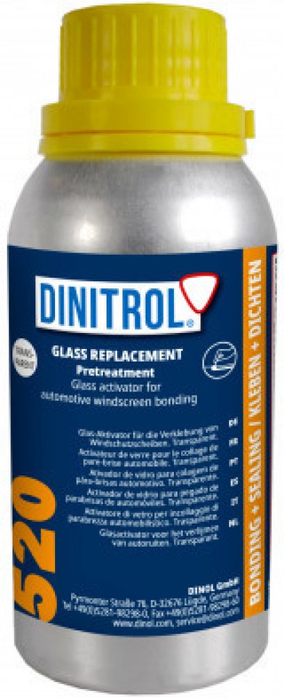 Čistící prostředek na bázi rozpouštědel a pro zvýšení přilnavosti lepeného spoje při přímém zasklívání autoskel. Nepoužívat na původní polyuretanovou vrstvu!Charakteristika: DINITROL 520 je čistící - aktivační prostředek na bázi rozpouštědla a přísad s vlastnostmi podporujícími adhezi. DINITROL 520 je nutnou první operací při lepení polyuretany DINITROL a je podmínkou garance.Oblast použití:INITRO...
