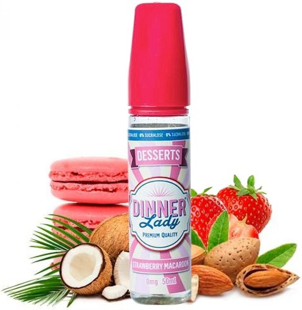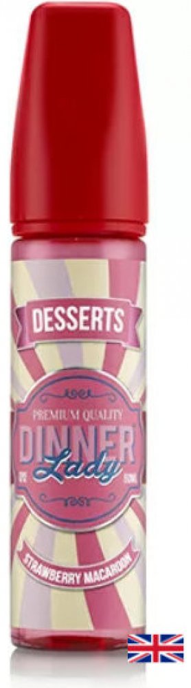 Příchuť Dinner Lady Strawberry Macaroon je kombinací krémové makronky s mandlemi a kokosek, která je pokryta lahodnou porcí čerstvých jahod. Příchuť tvoří delikátní ovocný dezert, jež si každý zamiluje.