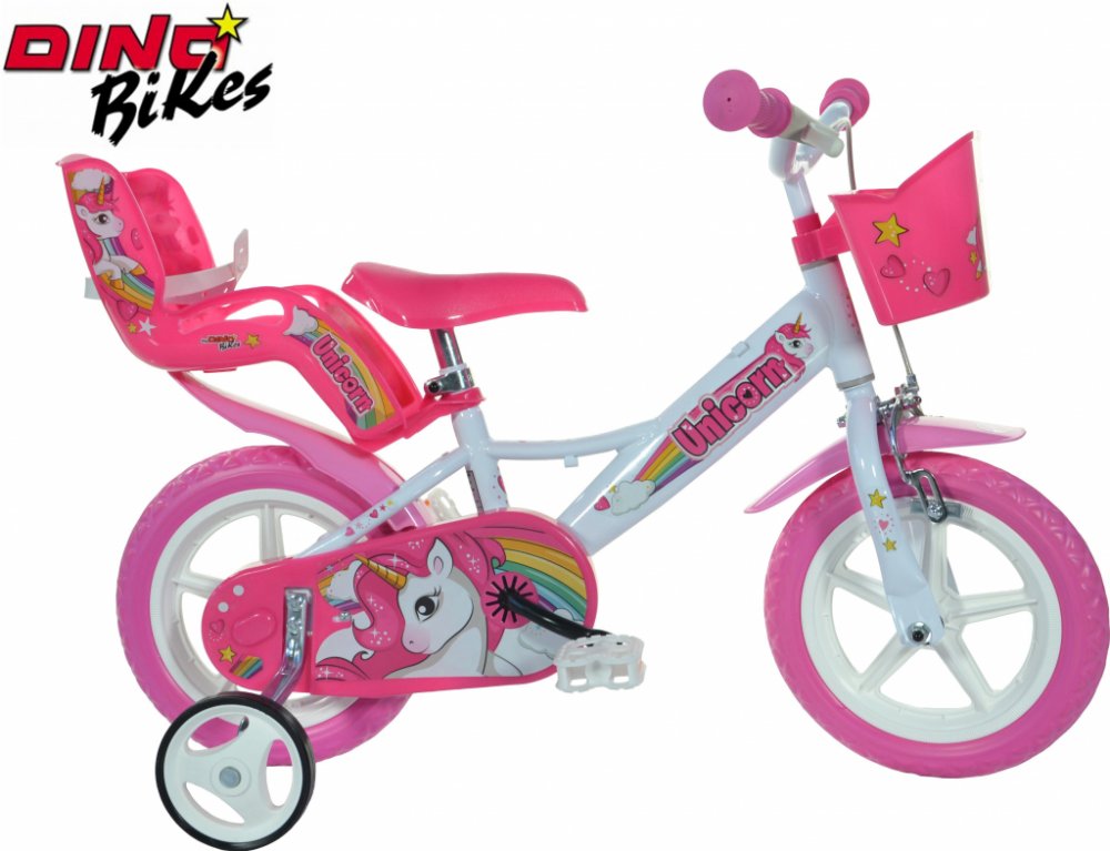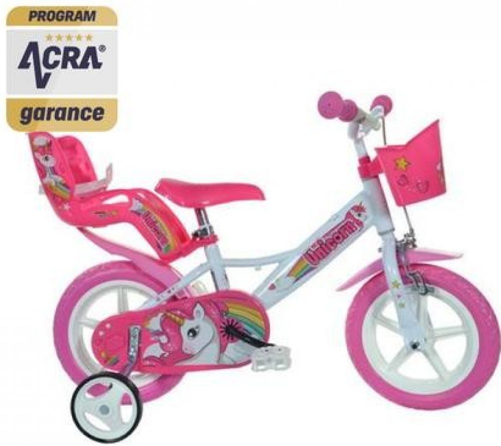 Dětské kolo Dino Bikes 124RL-UN Unicorn Jednorožec 12 je ideální pro malé holčičky, které se chtějí stát princeznou. Kolo má kompozitová paprsková kola 12" (palců = 30 cm), plné pláště s pěnovou výplní EVA, což vylučuje možnost defektu a zároveň se nemusí dofoukávat. Kolo je doporučené na výšku 87-110 cm a orientační věk dítěte 3-5 let. Kolo má bezpečnostní koncovku řidítek. Součástí balení jsou p...