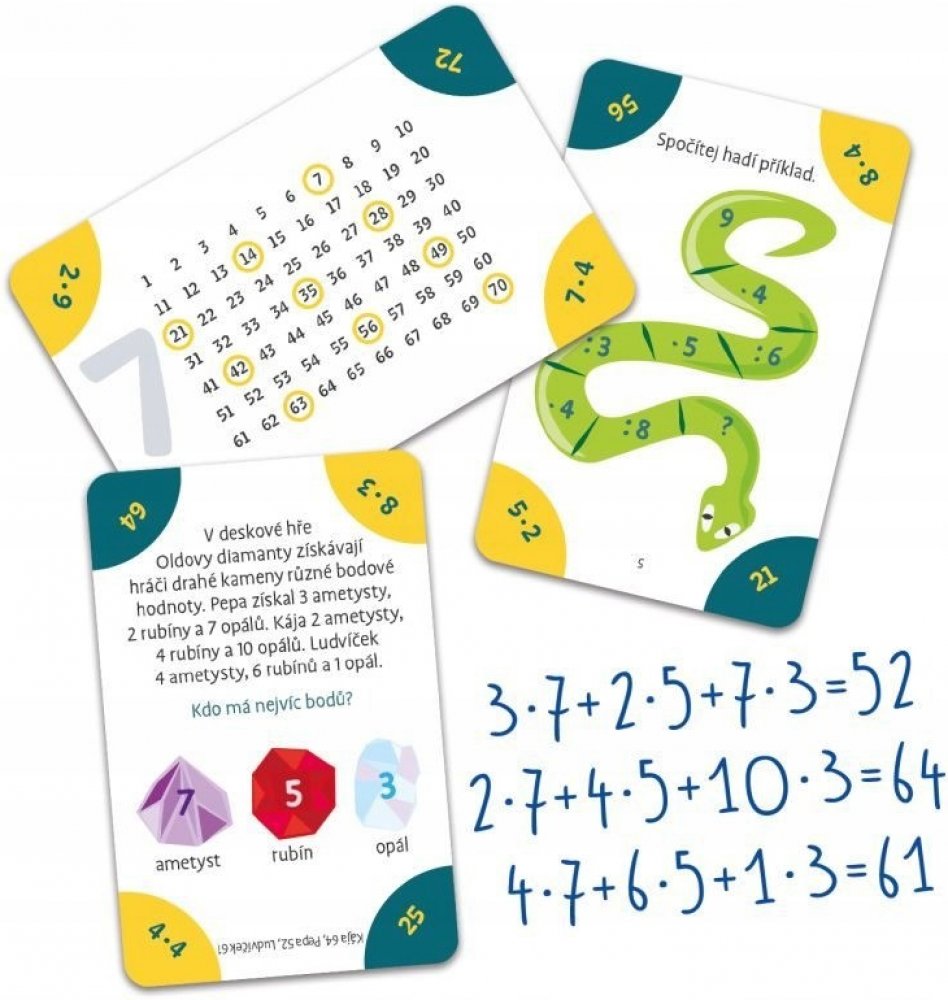 Zábavná kvízová hra pro všechny malé matematiky (první stupeň ZŠ), která chytrou a zajímavou formou pomůže dětem zjistit, že násobilka není nic, čeho by se měly obávat. Nenásilnou formou si děti samy nebo s rodiči procvičí násobilku čísel od 1 do 10. Úkoly a otázky mohou také využít učitelé na základních školách. Obsah balení: 60 kvízových karetpravidla Hlavní vlastnosti: procvičování násobilk...