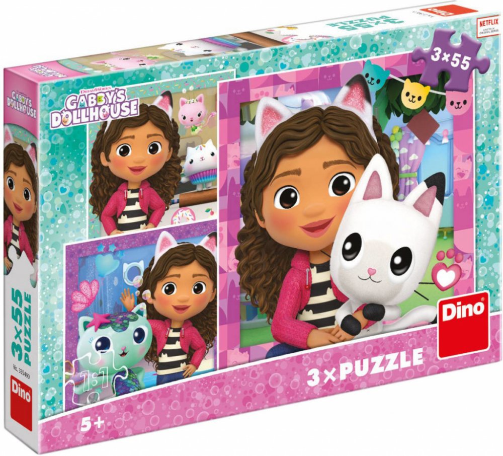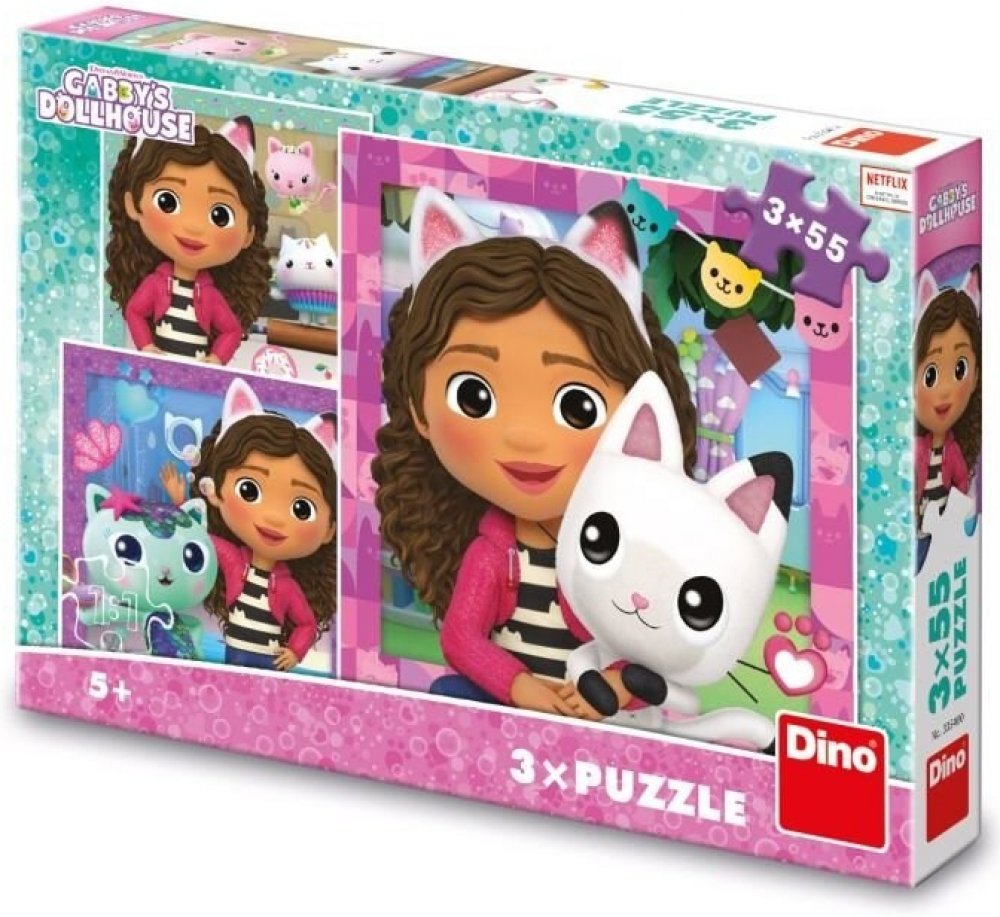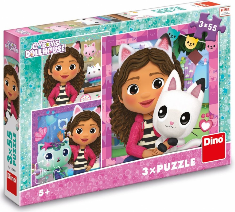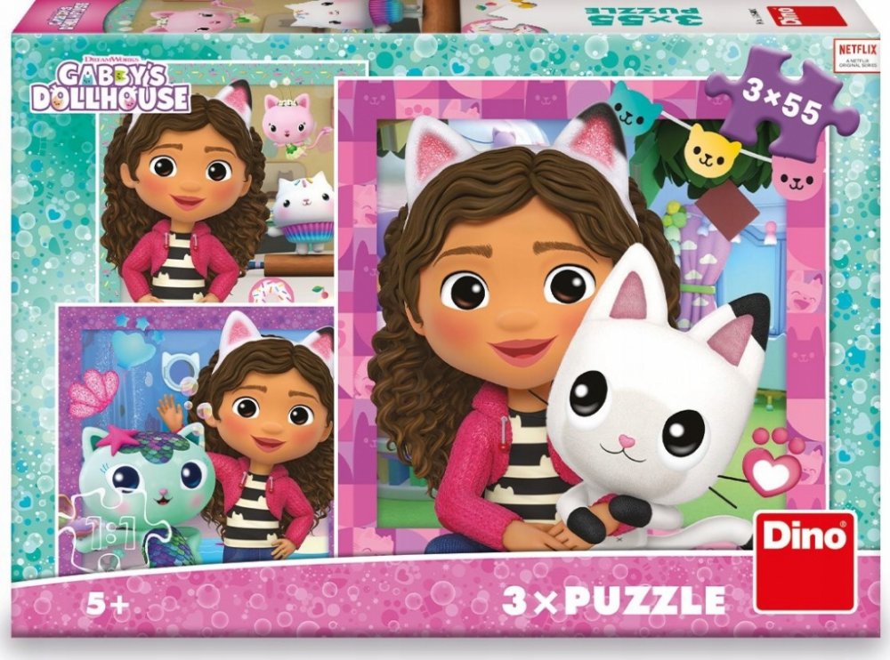 3 Dino puzzle skládačky Gábi a kamarádi v licenci Gábinin kouzelný domek. 3in1.