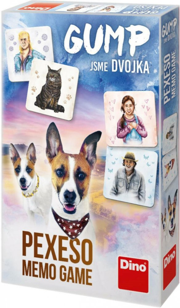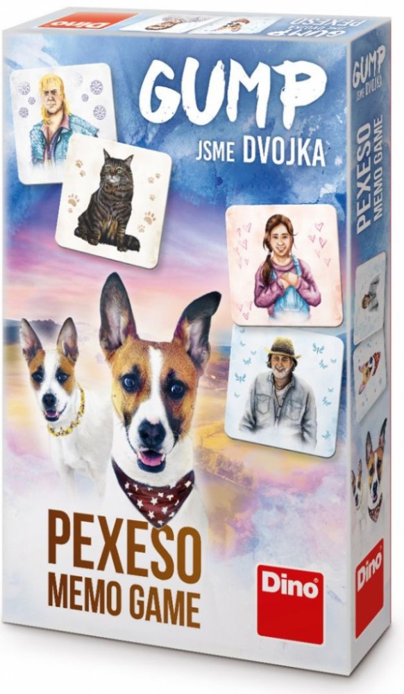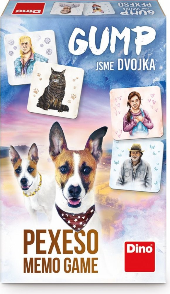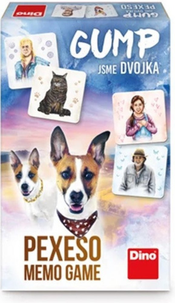 Společenská hra pexeso s motivem Gump: Jsme dvojka. Pro rozvíjení bystrosti není lepší společník než roztomilý Gump a jeho psí kamarádka Kytička! Pexeso s ilustrovanými obrázky psíka Gumpa, jeho páníčků a dalších čtyřnohých kamarádů je skvělý způsob, jak trénovat dětský postřeh. Hraní pexesa nejenže posiluje paměť, ale také učí děti trpělivosti. Užijte si zábavu a pozorujte, jak na začátku může bý...