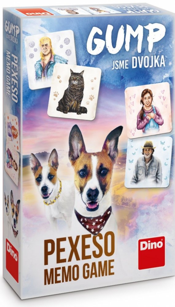 Společenská hra pexeso s motivem Gump: Jsme dvojka. Pro rozvíjení bystrosti není lepší společník než roztomilý Gump a jeho psí kamarádka Kytička! Pexeso s ilustrovanými obrázky psíka Gumpa, jeho páníčků a dalších čtyřnohých kamarádů je skvělý způsob, jak trénovat dětský postřeh. Hraní pexesa nejenže posiluje paměť, ale také učí děti trpělivosti. Užijte si zábavu a pozorujte, jak na začátku může být hra zdánlivě nekonečná, než se soupeř rozhodne otočit vybrané kartičky. Pexeso obsahuje 24 pevných kartonových kartiček a je vhodné pro děti od 4 let, ale i mladší šikulové se s ním mohou dobře bavit. Vše bylo vyrobeno a ilustrováno v ČR. Tradiční, klasická, společenská hra pexeso - děti si tříbí svůj postřeh a paměť tím, že si pamatují nejen náměty obrázků, ale i místo, na kterém kartička leží. Klasická hra pro všechny věkové kategorie, při které hráči hledají stejné dvojice kartiček. Vítězí ten, kdo najde nejvíce dvojic. Pexeso cvičí soustředění a dobrou paměť. Rozměry balení (š v h): 11,5 x 18 x 3,5cm Materiál: karton Počet hráčů: 2-6 Hrací doba: 20min. Balení: krabice Obsah balení: 24 kartiček, pravidla Cena je uvedena za 1 balení hry Hračka je vhodná pro děti od 4 let