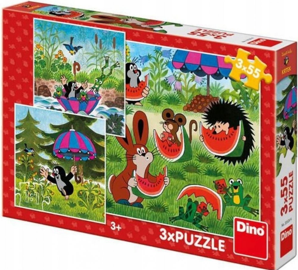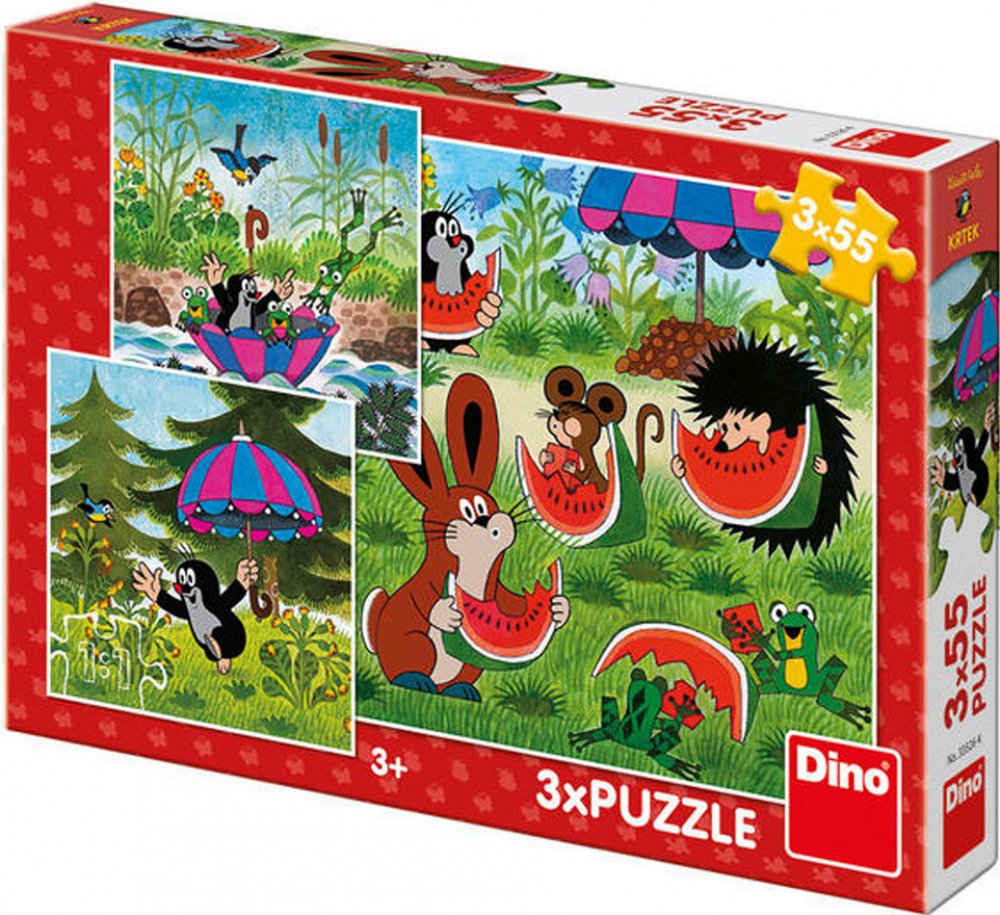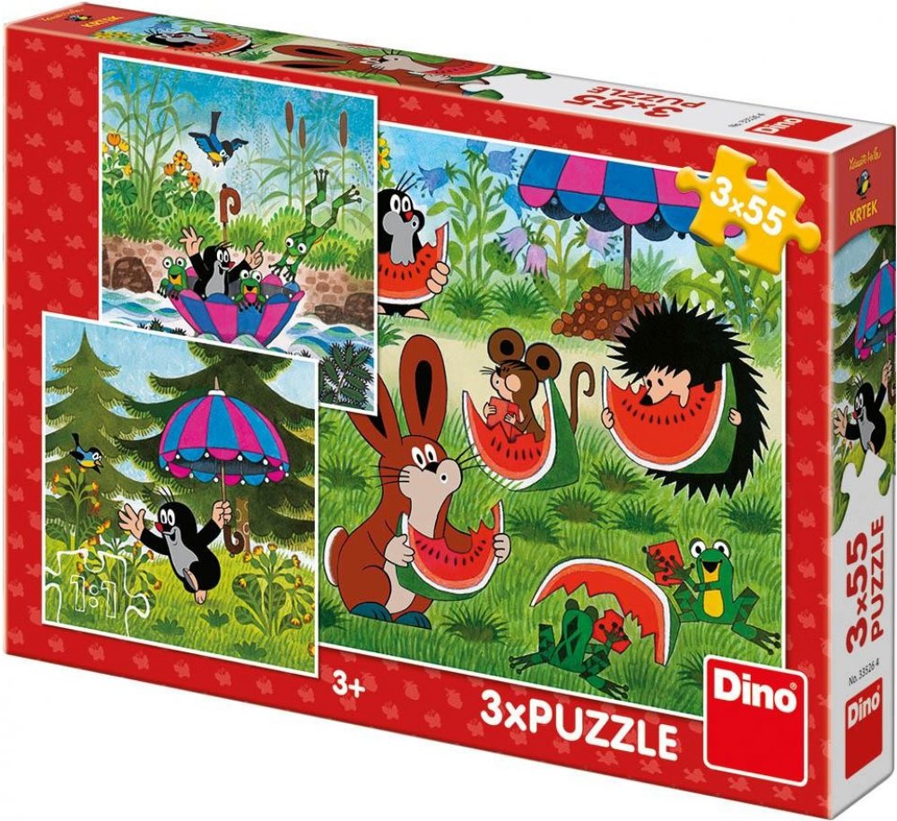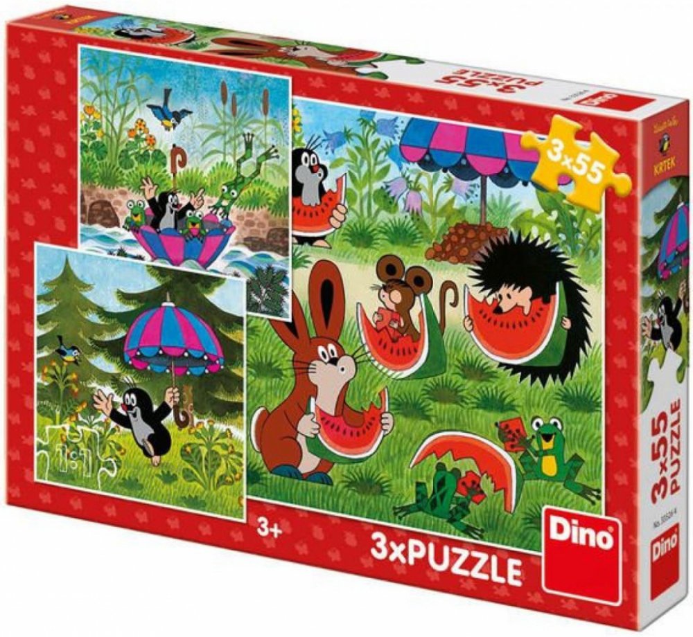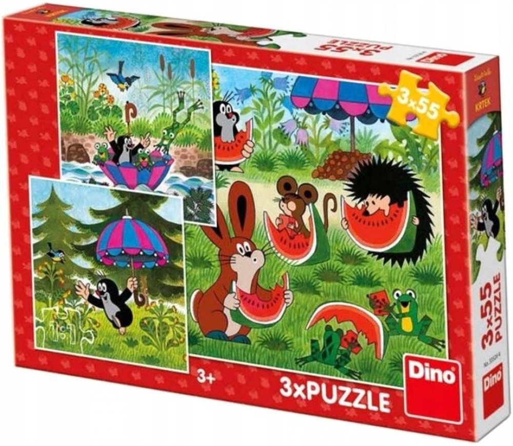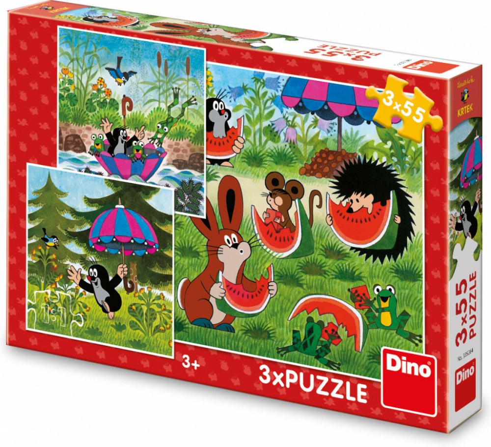 Dino KRTEK a paraplíčko skládačka Krteček 3 x 55 dílků