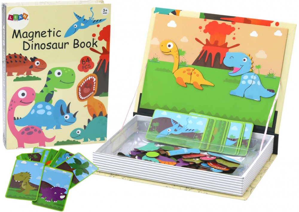 Dino LEANToys Magnetická kniha puzzle sauři 64 dílků.