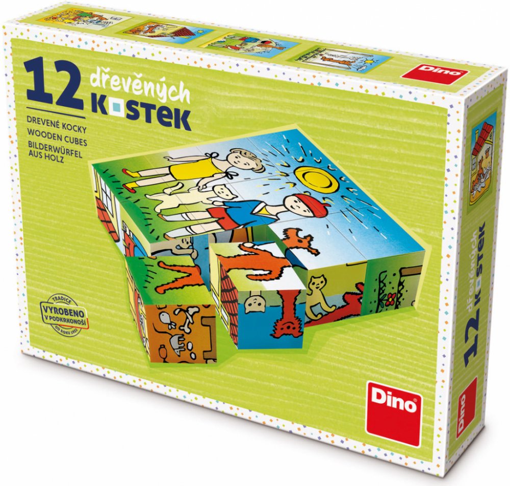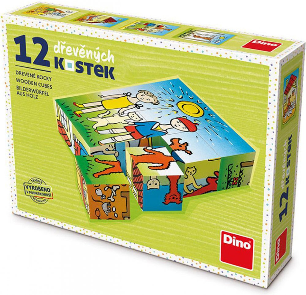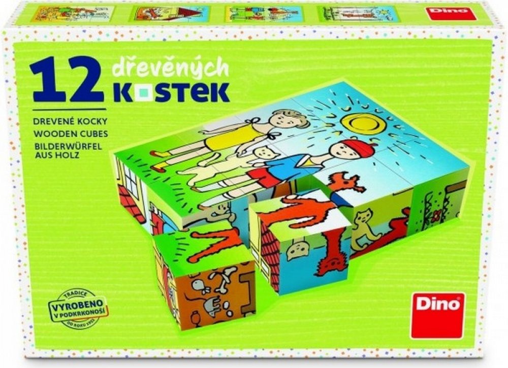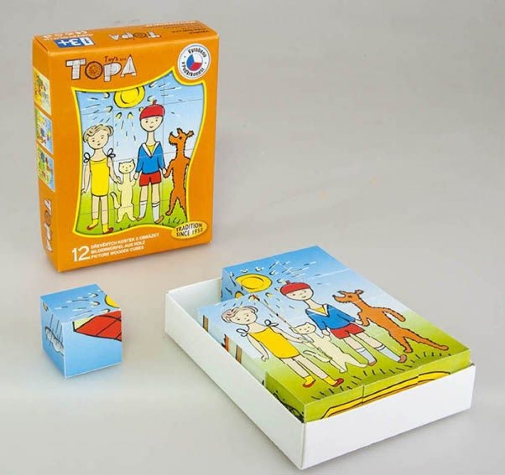 Obrázkové kostky podporují u nejmenších dětí koordinaci a motoriku při bourání a stavění komínů, napomáhají chápání příčiny a následku. U starších dětí při skládání obrázků rozvíjí fantazii a logické myšlení a motivují k vyprávění příběhů. 6 obrázků - 12 kostek balených v kartonové krabičce.