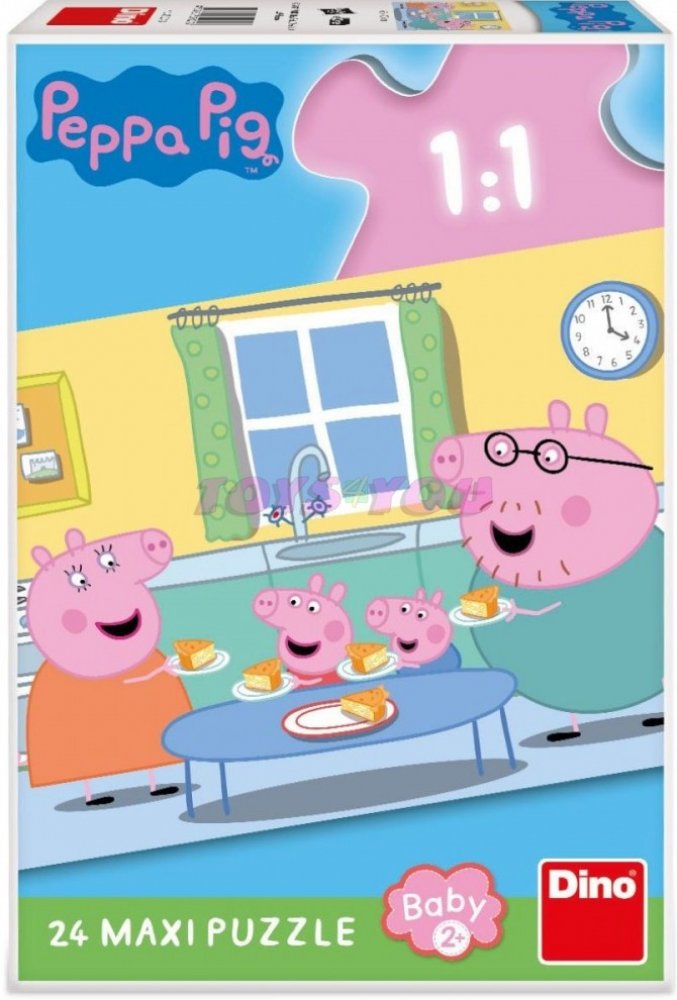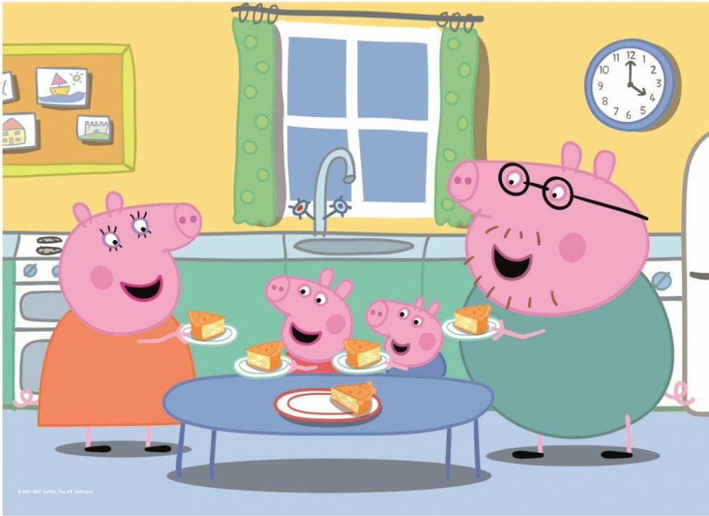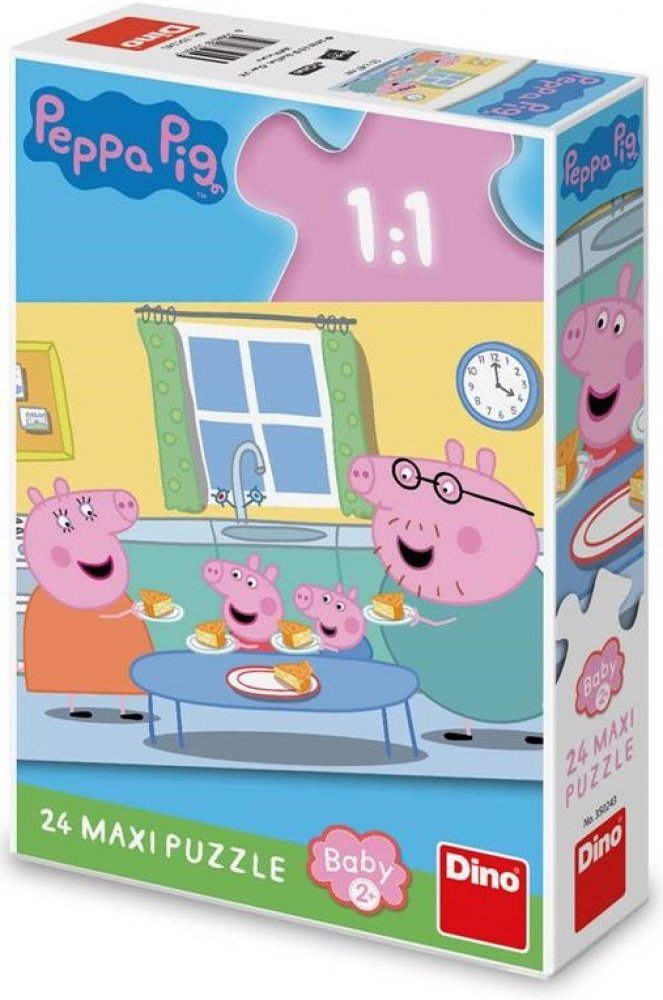Prasečí slečna Peppa se svou rodinkou zrovna svačí dort. A jeden kousek ještě zbývá! Na ten třeba pozvou vašeho malého stavitele, až se mu podaří poskládat všech 24 dílků puzzle. Skládačka má extra velké dílky, které se dětem dobře obrací a ještě lépe hledají.