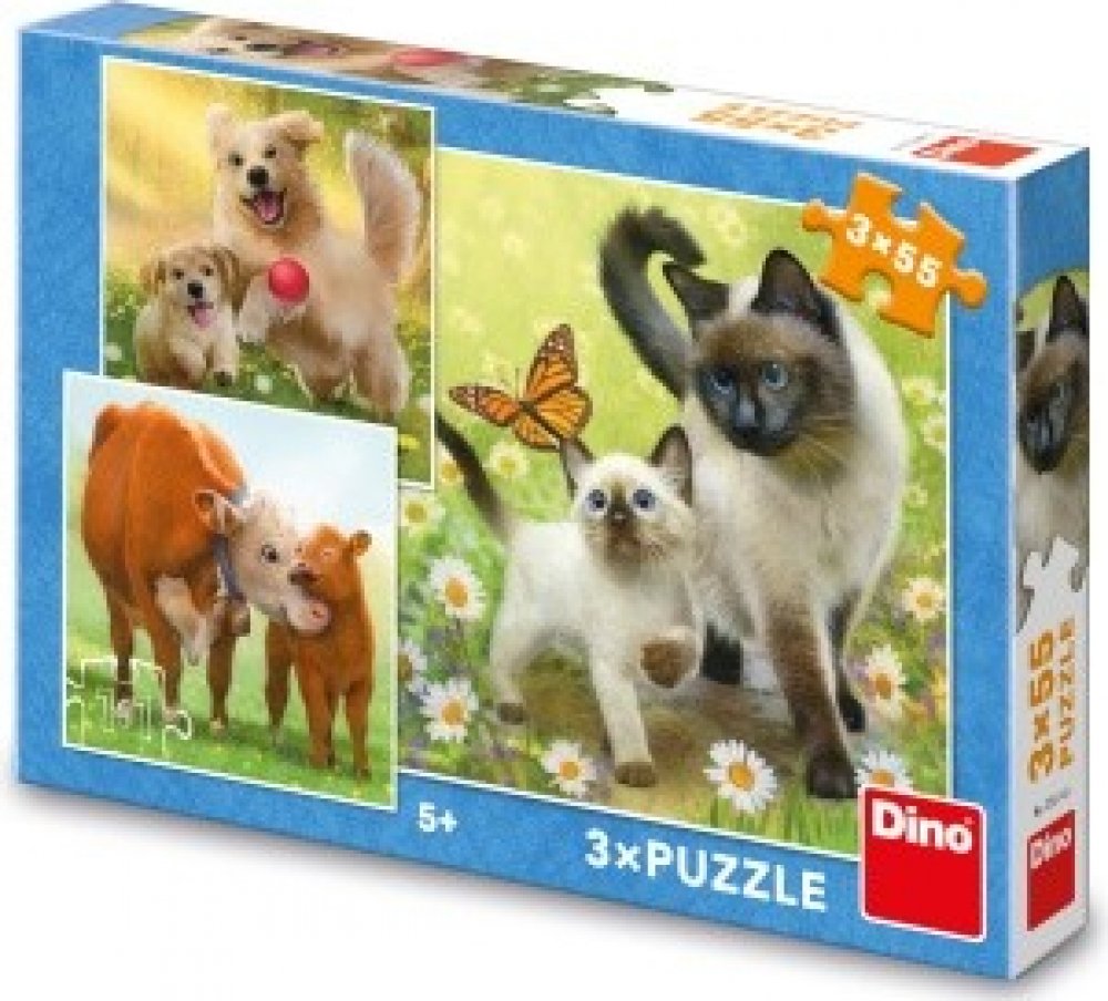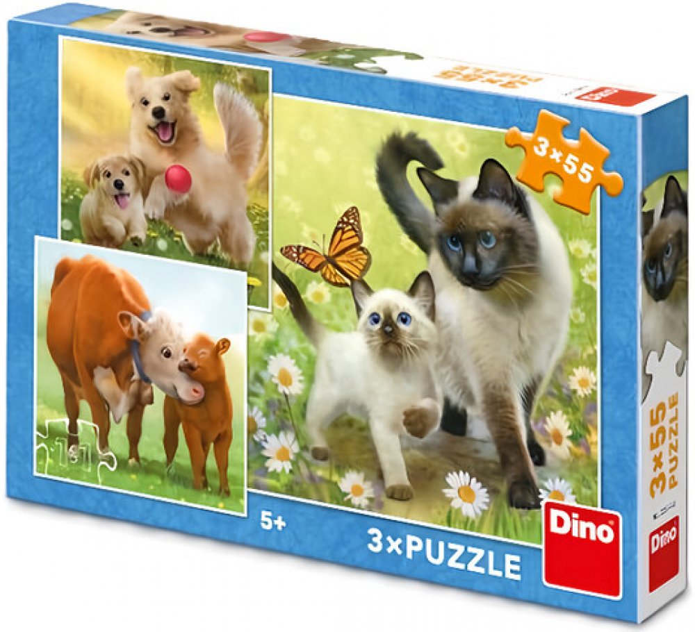 DINO Puzzle skládačka Zvířata rodinka, 3x 55 dílků, velikost obrázku 18 x 18cm, 3 obrázky 3in1 (3v1).