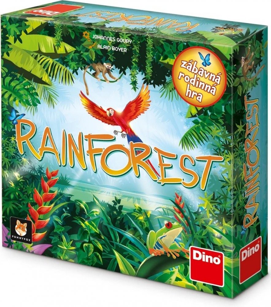 Dino Rodinná hra Rainforest - podrobné informace: Ponořte se do dobrodružství rodinné hry Rainforest a přeměňte svou džungli v nádherný ráj plný přírodní rozmanitosti! Sestavte barevnou džungli, kterou oživíte bohatou vegetací, rozkvetlými stromy a okouzlujícími květinami. Tímto umožníte návrat opic, žab, motýlů a papoušků do jejich domovských deštných pralesů a zároveň získáte cenné body za vaše úsilí. Ale to není vše! Vaším dalším úkolem je chránit tyto ikonické druhy zvířat, abyste jim zajistili bezpečnost a prosperitu. Sbírejte karty s Vaším totemovým zvířetem a využijte svou strategii a taktiku, abyste získali navíc cenné body.Vyzvěte své přáte...