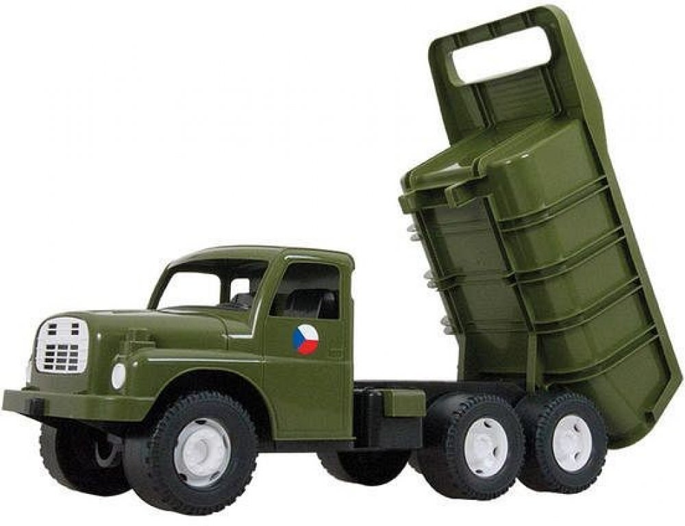 Umí váš potomek ocenit u kamarádů z pískoviště disciplínu? Nebo prostě jen miluje hraní na vojáky? Pak je pro něj Tatra v khaki barvě s českou vlaječkou ta pravá. Legendární náklaďák s vyklápěcí korbou převlečený do vojenského hávu potěší všechny akční děti i jejich tatínky. Nová verze má madlo nad kabinou, odolný volant a hlavně výjimečnou nosnost.