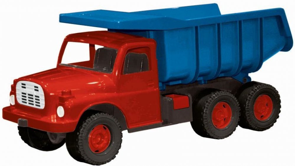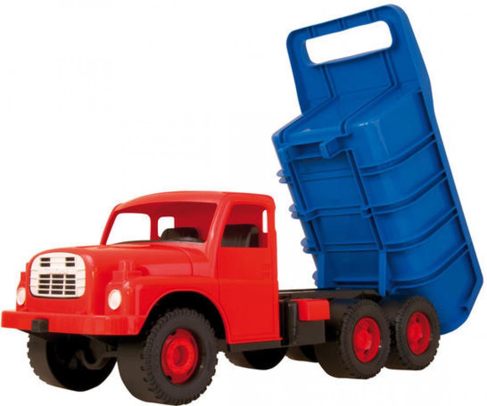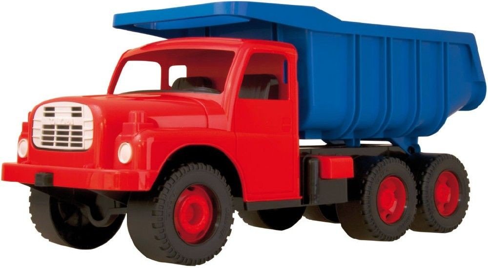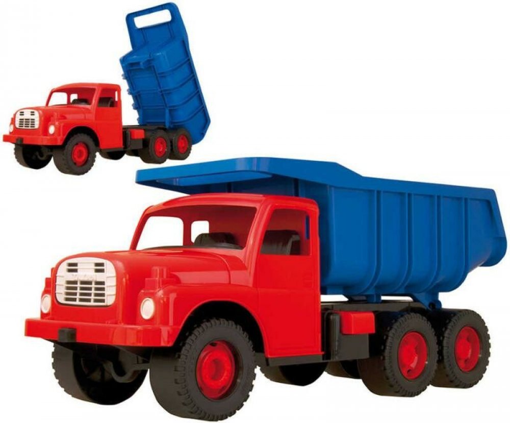 Nákladní Tatra T 148 v modročervené barvě je vyrobena z kvalitního plastu a váží cca 5 kg. Tatra má širokou funkční sklápěcí korbu, kterou je možné zajistit proti samovolnému vyklopení. Tatra je dlouhá cca 73 cm a má nosnost až 100 kg, takže zvládne svézt jak dítě, tak pořádný náklad. Spoustu zábavy si s touto hračkou děti užijí nejen na zahradě a na písku.