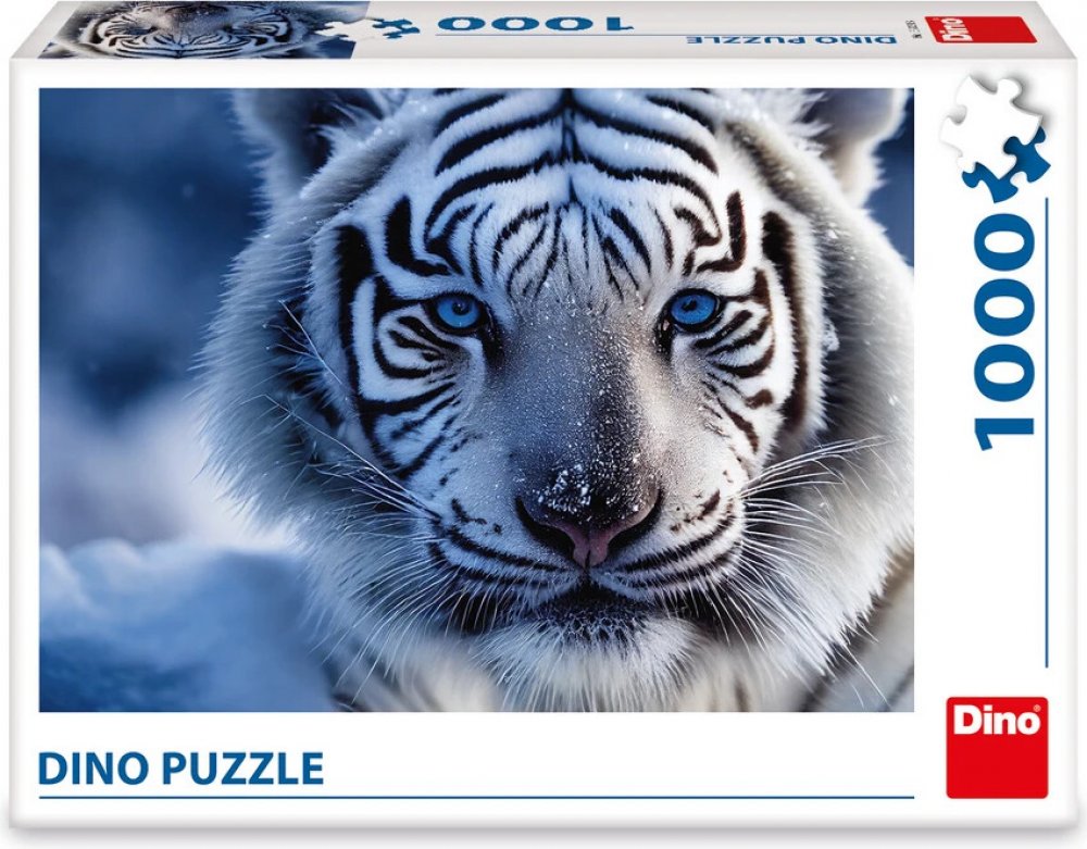 Puzzle Bílý tygr složíte z precizně řezaných dílků, které odhalují každý detail ušlechtilé srsti i pronikavý pohled modrých očí majestátní šelmy.