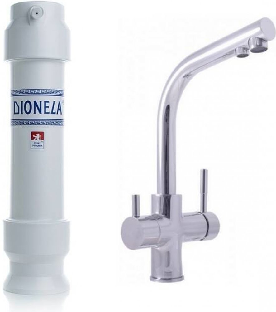 Vodní filtr Dionela FAM1 od českého výrobce v setu s trojcestnou dřezovou baterií Harmonia a kompletní sadou pro připojení do tlaku. Filtrační vložka FAM1 odstraňuje z vody chlór a celou řadu dalších cizorodých látek. Slouží jako ekonomické řešení pro zlepšení kvality vody ve vaší domácnosti určené k pití, přípravě nápojů a vaření.