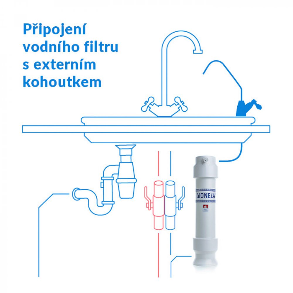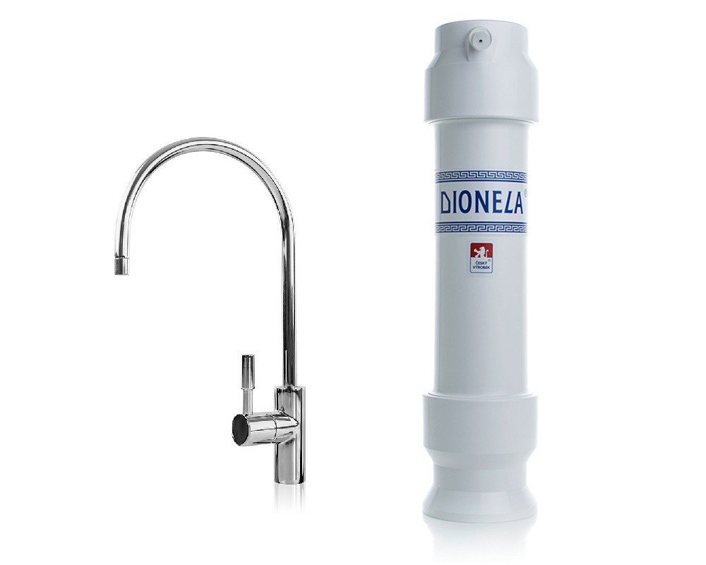 Vodní filtr Dionela FAM1 od českého výrobce v setu s pákovým přepínačem P7ak. Filtrační vložka FAM1 odstraňuje z vody chlór a celou řadu dalších cizorodých látek. Slouží jako ekonomické řešení pro zlepšení kvality vody ve vaší domácnosti určené k pití, přípravě nápojů a vaření.