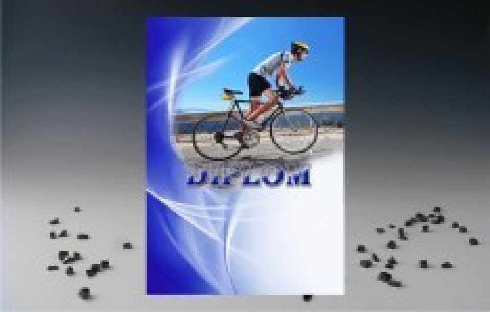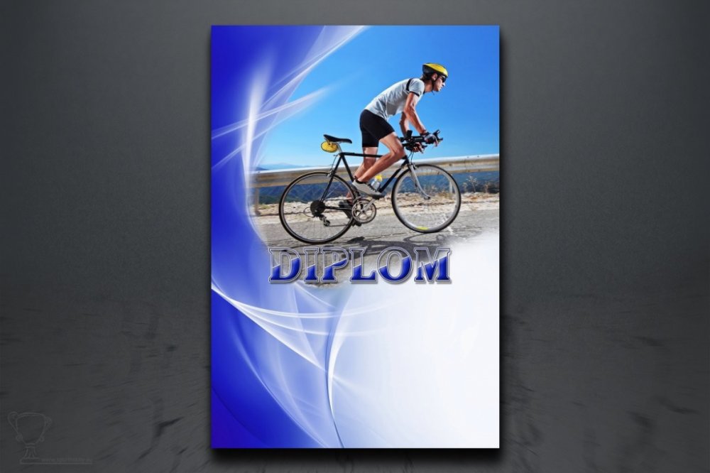 Diplom s motivem cycling. Formát A5, A4, A3 Diplomy jsou vytištěny plnobarevně na matném křídovém papíru 200g/m2, umožňujícím jak ruční dopisování údajů, tak i dotisk v běžné kancelářské počítačové tiskárně (inkoustové, laserové).