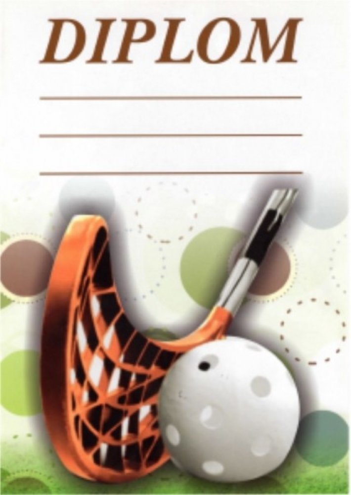 Diplom formátu A5 na výšku s motivem florbalu.