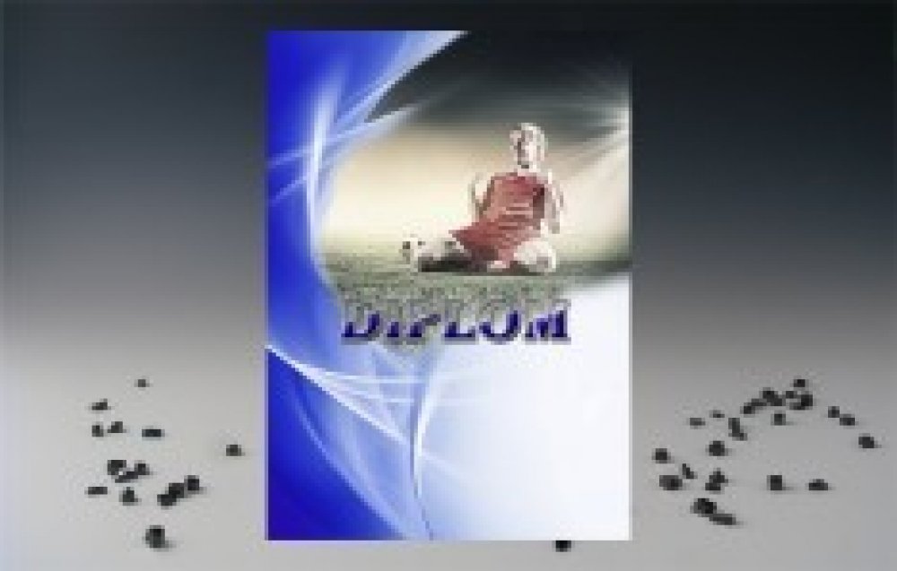 Diplom s motivem fotbalu. Formát A5, A4, A3 Diplomy jsou vytištěny plnobarevně na matném papíru 300g/m2, umožňujícím jak ruční dopisování údajů, tak i dotisk v běžné kancelářské počítačové tiskárně (inkoustové, laserové).