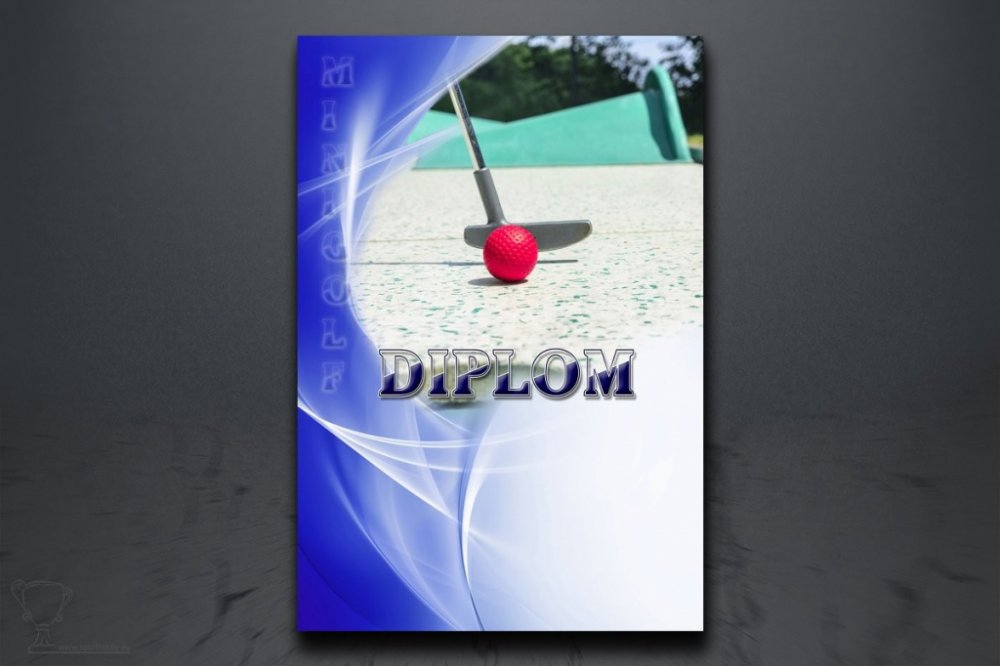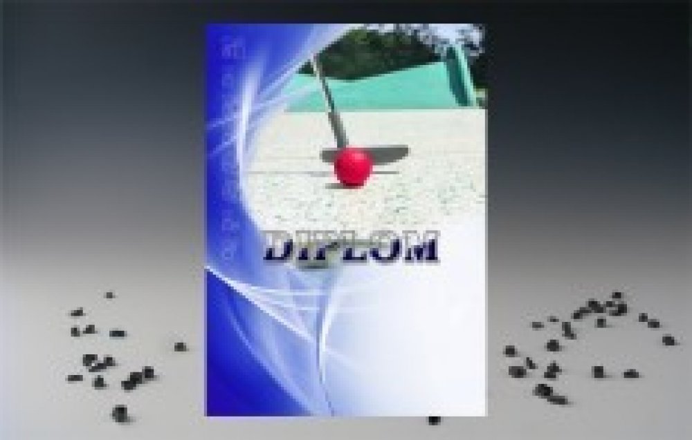 Diplom s motivem minigolfu. Formát A5, A4, A3 Diplomy jsou vytištěny plnobarevně na matném papíru 300g/m2, umožňujícím jak ruční dopisování údajů, tak i dotisk v běžné kancelářské počítačové tiskárně (inkoustové, laserové).