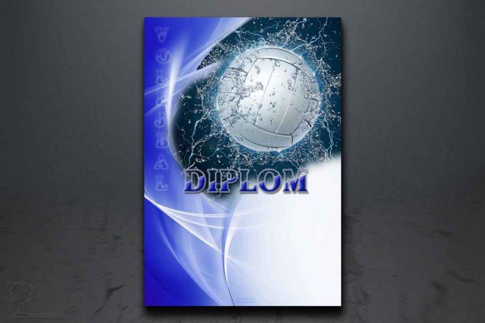 Diplom s motivem volejbalu. Formát A5, A4, A3 Diplomy jsou vytištěny plnobarevně na matném křídovém papíru 200g/m2, umožňujícím jak ruční dopisování údajů, tak i dotisk v běžné kancelářské počítačové tiskárně (inkoustové, laserové).