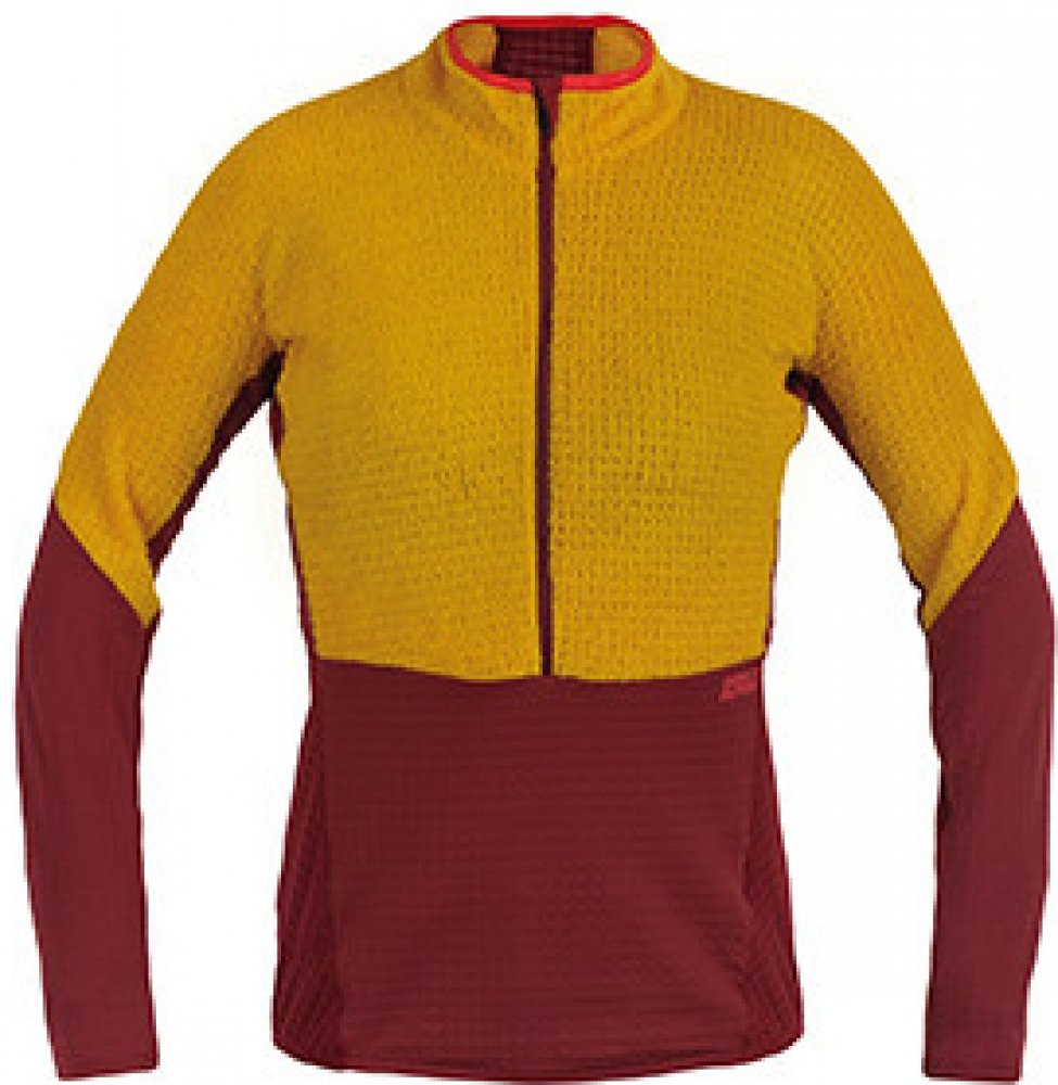 Dámský pulover hybridní kostrukce, vhodný jako první nebo druhá vrstva, nabídné účelně zvolenou kombinaci špičkových materiálů. Polartec Alpha v oblasti ramen, hrudního koše a krku zajišťuje vysoký tepelný komfort s příjemným pocitem z nošení. Do dolní části puloveru jsme použili pružný, velmi lehký (145 g/m2) technický materiál Technostretch® Grid Fleece. Jeho vnitřní struktura je tvořena plastickými, jednotlivě umístěnými čtverečky. Díky tomu se v prostoru mezi tělem a materiálem udržuje vrstva cirkulujícího vzduchu, který zajišťuje příjemnou provozní teplotu a zároveň odvádí přebytečnou tělesnou vlhkost. Anatomicky technický střih vychází z přirozeného tvaru dámského těla a neomezuje v pohybu při sportu. Zadní díl je prodloužený, aby kryl dostatečně oblast spodních zad. Dolní kraj zpevněný pruženkou zabraňující vyhrnování.