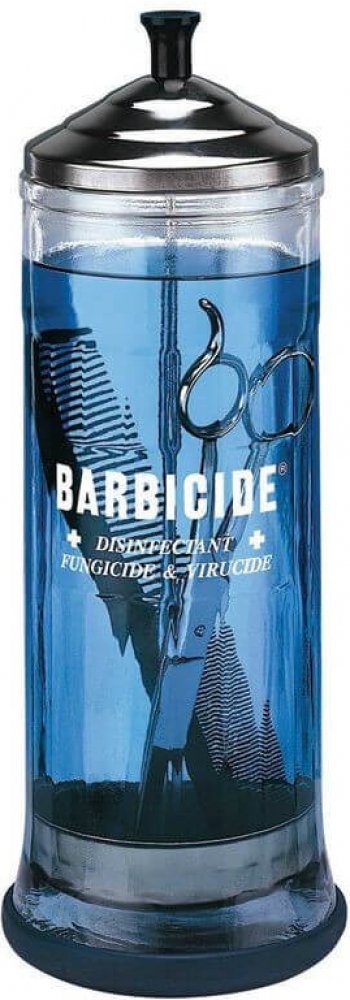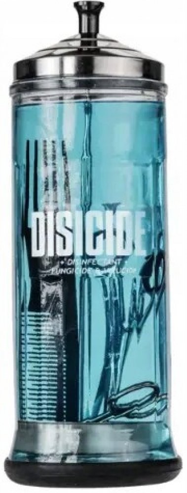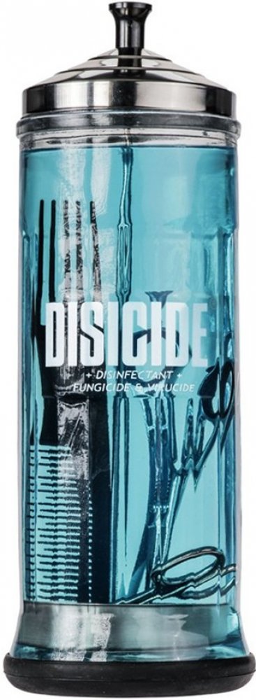 Velká nádoba DISICIDE pro dezinfekci předmětů a nástrojů používaných v barbershopech, salonech či zdravotních zařízeních. Nádoba je vyrobena z vysoce kvalitního skla a nerezového víka a zásobníku. Výška nádoby je 29 cm, průměr 9,5 cm a pojme až 1100 ml tekutiny.