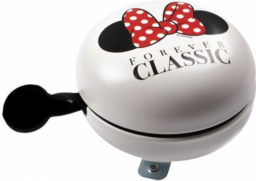 Hlavní přednosti produktu Disney Minnie classic retro 80 mm Dětský zvonek na kolo Disney zajistí, že ostatní včas zaregistrují malého cyklistu, a tím přispívá k jeho bezpečnosti Jedná se o mechanický typ, který nevyžaduje žádné baterie Byl vyroben z lehkého plastu a pevného kovu