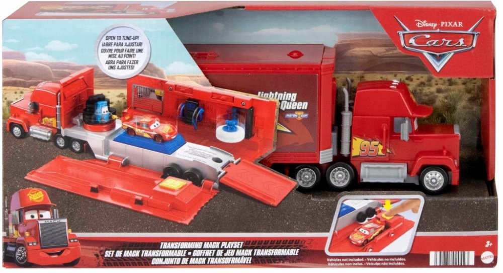 - Disney Pixar Auta Maniek Transporter, sada 2v1 podněcuje rallyové emoce díky zábavě 2v1 s transportérem a servisním střediskem