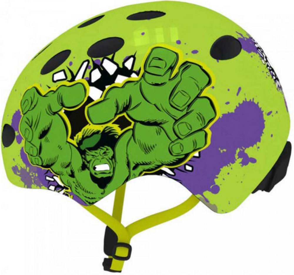 Dětská freestyle přilba Disney HULK je vysoce kvalitní a bezpečná přilba určená pro jízdu na kole, kolečkových bruslích, skateboardu či freeride. Ochranný skelet vyrobený z pevných a odolných materiálů chrání oblast hlavy proti případnému nárazu způsobeného pádem. Helma zaujme především atraktivním barevným pojetím a motivem Disney. Kvalitní materiály, vysoký standard bezpečnosti a propracovaný tv...