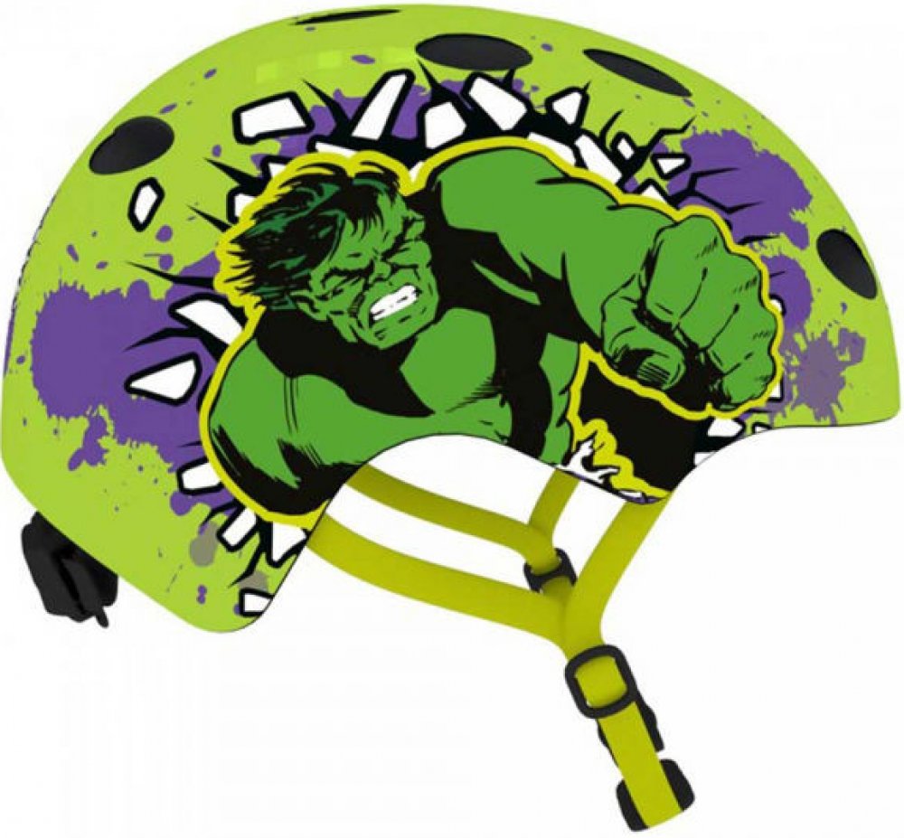 Dětská freestyle přilba Disney HULK je vysoce kvalitní a bezpečná přilba určená pro jízdu na kole, kolečkových bruslích, skateboardu či freeride. Ochranný skelet vyrobený z pevných a odolných materiálů chrání oblast hlavy proti případnému nárazu způsobeného pádem. Helma zaujme především atraktivním barevným pojetím a motivem Disney. Kvalitní materiály, vysoký standard bezpečnosti a propracovaný tvar i design jsou vlastnosti, které freestyle přilbu řadí mezi vyhledávané modely. Velikost M (54 - 58 cm)