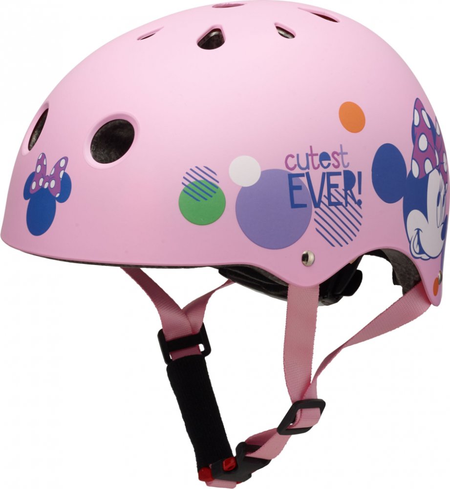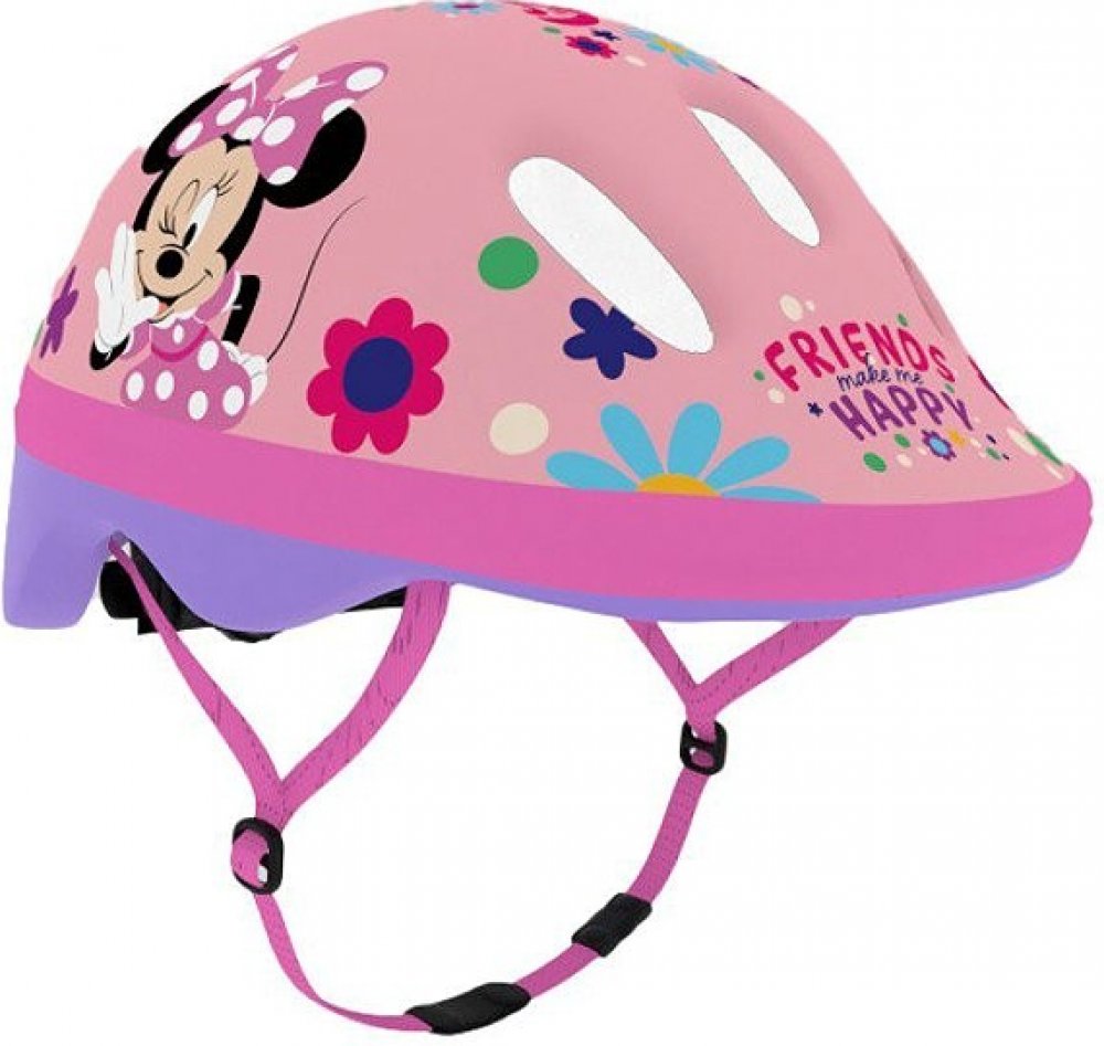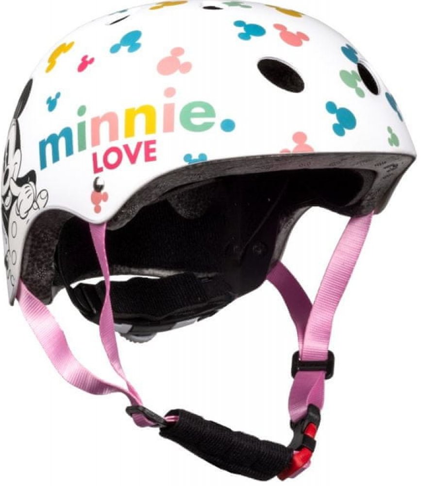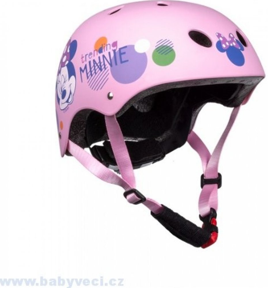 Tato bezpečnostní přilba pro děti, splňující nejpřísnější bezpečnostní standardy, je jedním z nezbytných doplňků nutných pro jízdu Vašeho dítěte na dětském kole nebo kolečkových bruslí. Je prokázáno, že bezpečnostní přilby mnohonásobně snižují riziko těžkého poranění oblasti hlavy při pádu, což je hlavní důvod proč by bezpečnostní přilba Vašemu dítěti neměla chybět. Designově velice pěkně ztvárněná přilba má na svém povrchu motiv Disney MINNIE. Přilba je vyrobena moderní technologií In-mold a vhodná pro rekreační i sportovní použití. Velikost 52 - 56 cm