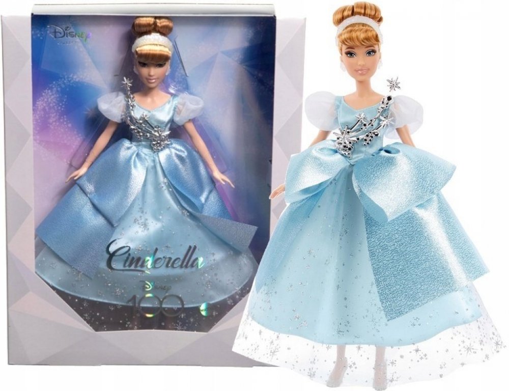 Připomeňte si Disney 100 Years of Wonder s touto speciální sběratelskou edicí panenky Popelka, inspirované nadčasovým filmem Disney! Panenka Popelka má na sobě luxusní módu inspirovanou jejími nezapomenutelnými modrými šaty a září v saténu, třpytkách a elegantním diamantovém motivu. Tato krásná panenka s krásným, vystavitelným balením je splněným snem pro kolekci každého fanouška Disney. Panenka nemůže stát sama. Barvy a dekorace se mohou lišit. Na oslavu Disney 100 Years of Wonder a inspirovaná nezapomenutelným filmem Disney, panenka Popelka dostane platinovou úpravu! Popelčiny charakteristické šaty jsou zde propracované v úžasné saténové a kovové látce se třpytivými hvězdami a diamantovými motivy, které přikývnou na její magický moment přeměny ve filmu. Vlásky panenky Popelky jsou upraveny do elegantního upnutého účesu a mají modrou čelenku, která září vsazenými třpytkami. Třpytivé náušnice a boty dotváří opulentní vzhled. Díky stojanu na panenky a prémiovému balení je tato pohyblivá panenka Popelka ideální pro vystavování. Fanoušci mohou posbírat všechny panenky Disney Collector a sestavit tak dokonalou sbírku panenek Disney. Každý se prodává samostatně, v závislosti na dostupnosti.