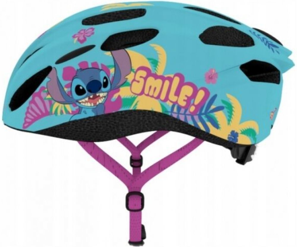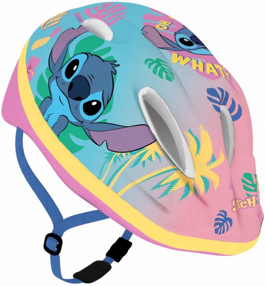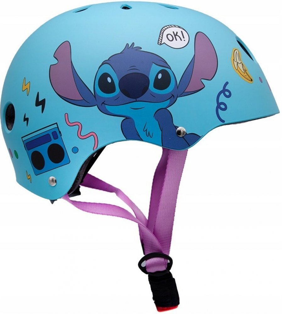 Dětská freestyle přilba Disney STITCH je vysoce kvalitní a bezpečná přilba určená pro jízdu na kole, kolečkových bruslích, skateboardu či freeride. Ochranný skelet vyrobený z pevných a odolných materiálů chrání oblast hlavy proti případnému nárazu způsobeného pádem. Helma zaujme především vnější matnou povrchovou úpravou, atraktivním barevným pojetím s motivy Disney. Kvalitní materiály, vysoký standard bezpečnosti a propracovaný tvar i design jsou vlastnosti, které freestyle přilbu STITCH řadí mezi vyhledávané modely. Velikost: S (48 - 52 cm)