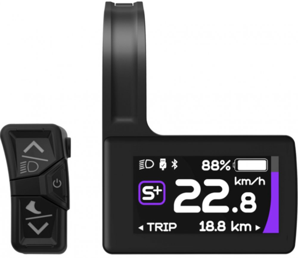Tento displej je plně kompatibilní s motory, které využívají CAN komunikaci, včetně populárních modelů Bafang M410, M500, M510 a M600. Jeho 1.9" TFT displej zajišťuje jasné a ostré zobrazení klíčových informací, jako jsou aktuální, průměrná a maximální rychlost, stav nabití baterie v procentech, denní a celková ujetá vzdálenost (ODO) a výběr z až šesti režimů asistence.