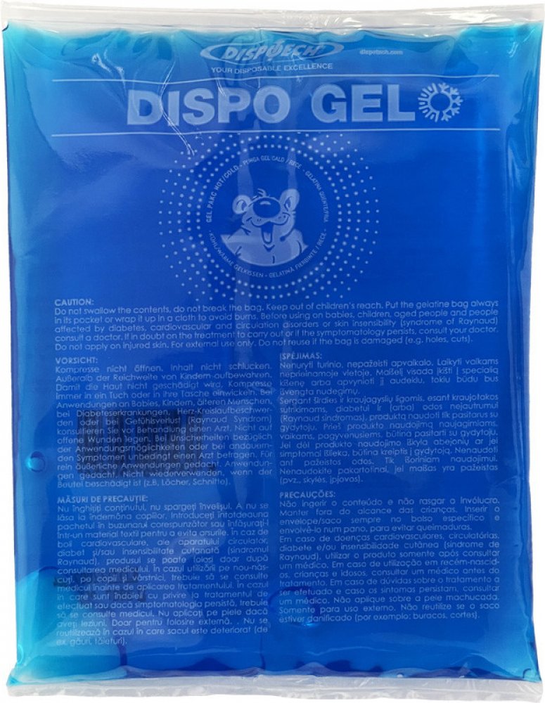 Zdravotnický prostředek DISPO GEL je opakovaně použitelný gelový sáček určený jako studený nebo teplý obklad. Doporučuje se jako základní vybavení lékárniček s první pomocí. Slouží pro domácí i ústavní péči. Je vhodný:při nevolnostech, mdlobách, popáleninách, bolestech měkkých tkání a svalů, pohmožděninách a drobných poraněních,pro zklidnění pooperační rány, zmírnění otoků.Balení obsahuje 1 ks o r...