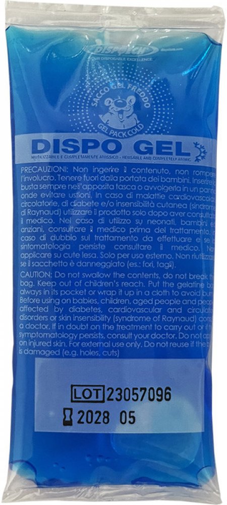 DISPOGEL Gelový sáček horký/studený 5.5x12cm Zdravotnický prostředek DISPO GEL je opakovaně použitelný gelový sáček určený jako studený nebo teplý obklad. Doporučuje se jako základní vybavení lékárniček s první pomocí. Slouží pro domácí i ústavní péči.