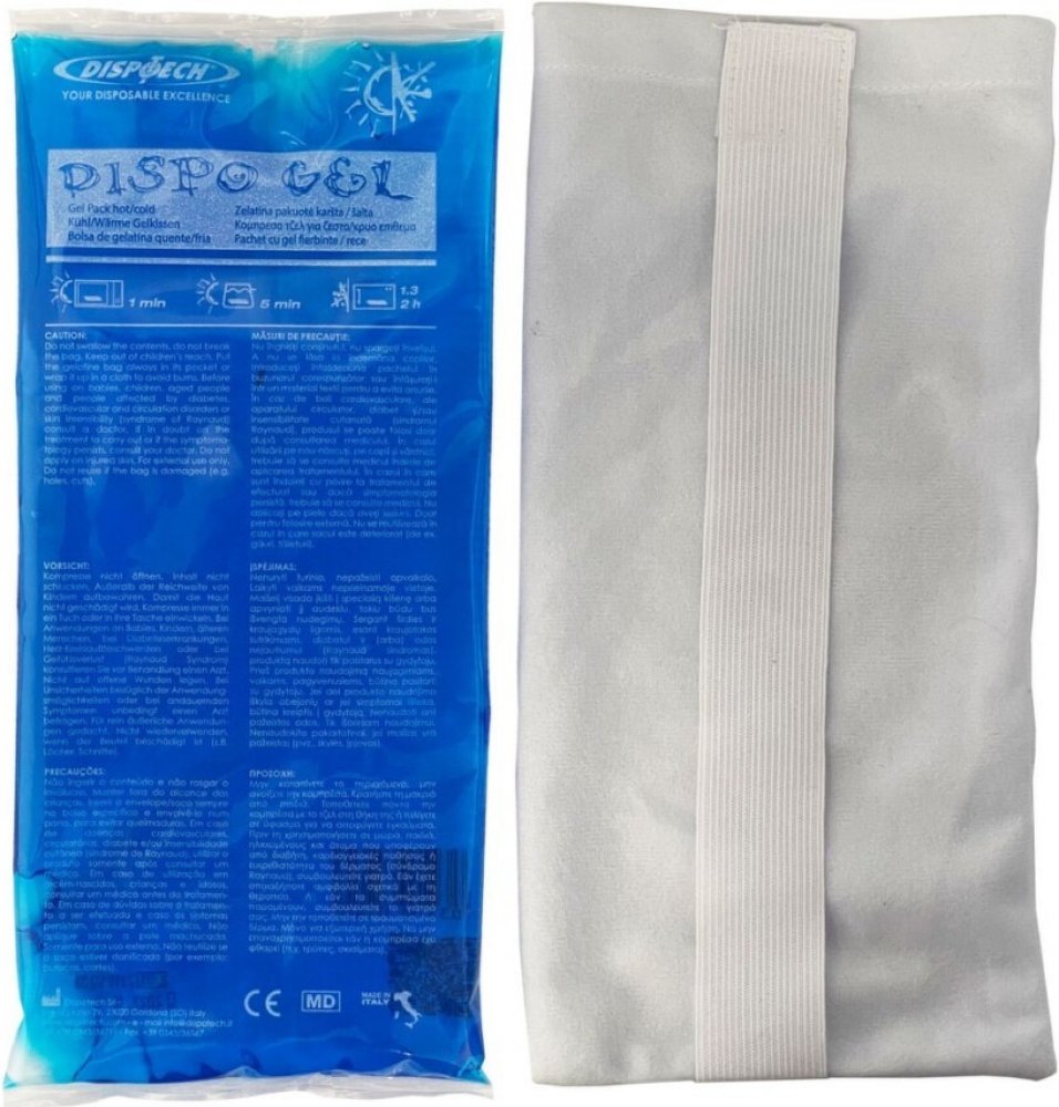 Zdravotnický prostředek DISPO GEL je opakovaně použitelný gelový sáček určený jako studený nebo teplý obklad. Doporučuje se jako základní vybavení lékárniček s první pomocí. Slouží pro domácí i ústavní péči. Balení včetně samodržícího obalu.Je vhodný:při nevolnostech, mdlobách, popáleninách, bolestech měkkých tkání a svalů, pohmožděninách a drobných poraněních,pro zklidnění pooperační rány, zmírně...