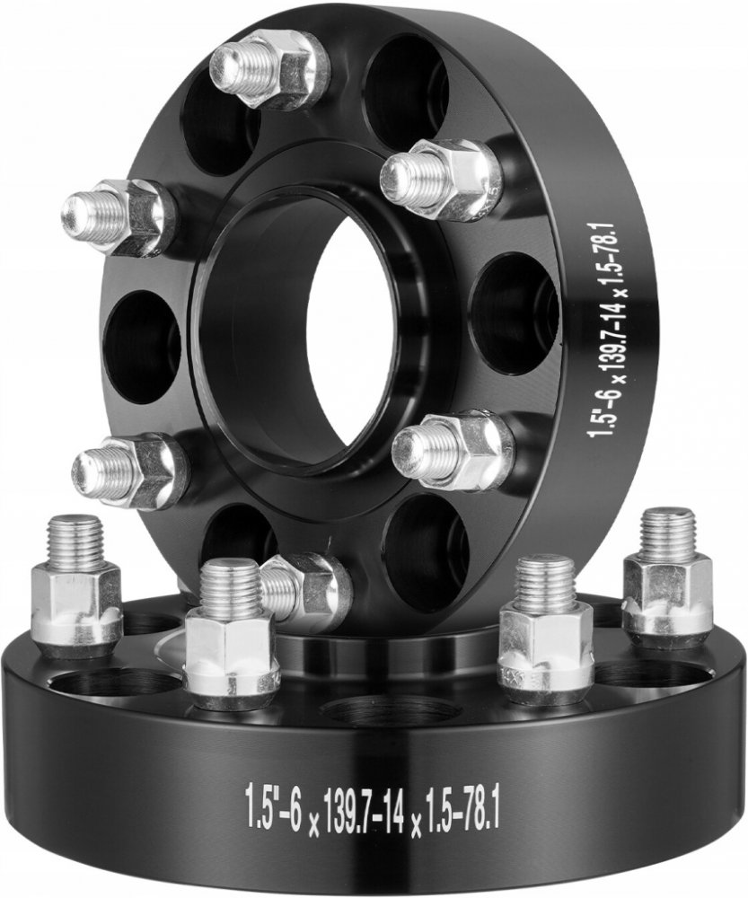 Specifikace Produktu: Naše adaptéry kol obsahují 4 rozšiřovací podložky kol, každá o tloušťce 1.5 palce (38.1 mm), rozteč šroubů 6x5.3 palce, průměr náboje 3.07'' (78.1 mm) a stoupání závitu M14x1.5. Před nákupem si pečlivě zkontrolujte specifikace v příručce k vozidlu, abyste zajistili kompatibilitu.