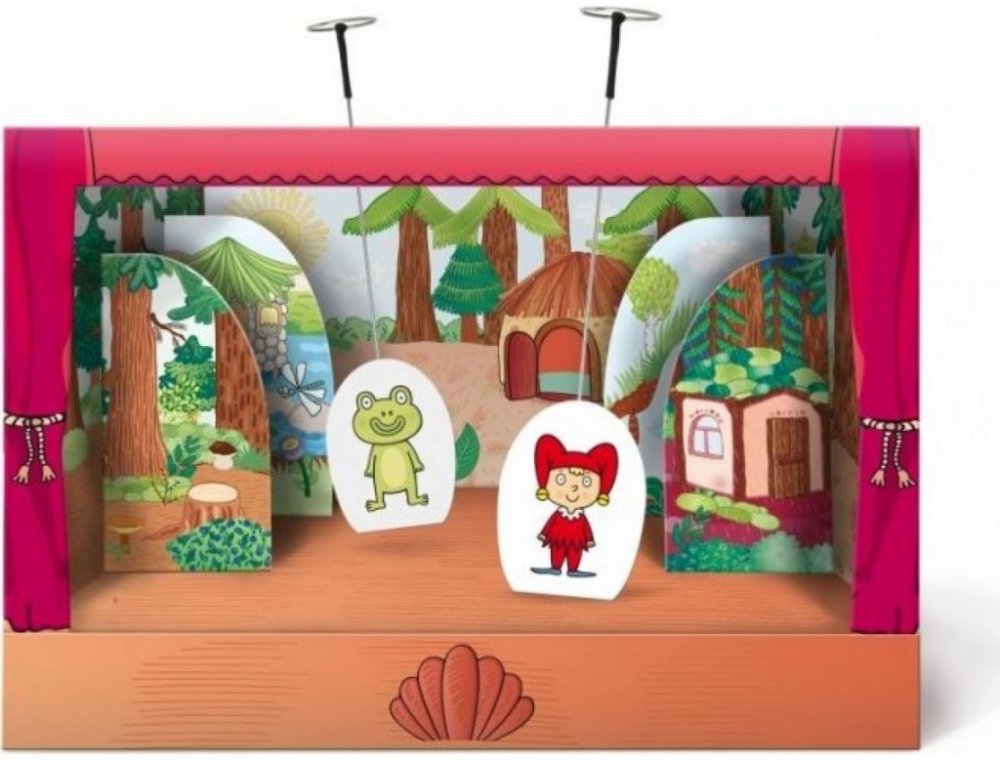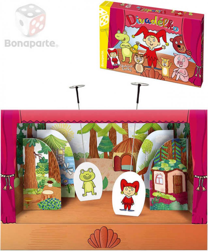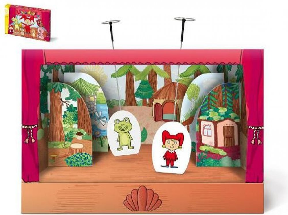 Obsah balení: papírové "loutkové divadlo" s oponou, 6ks vysekávaných papírových postaviček na vodícím drátu, kulisy, 3 tištěné předlohy veršovaných pohádek o zvířátkách