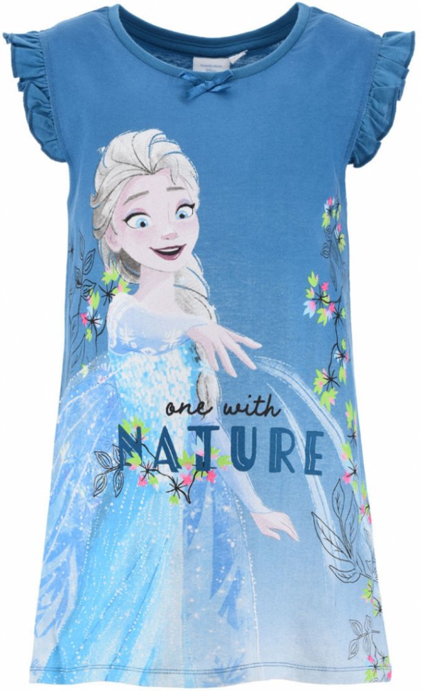 Krásná dívčí noční košile s velkým obrázkem Elsy z Ledového království. Volánkový rukávek, mašlička u krku. Velmi příjemný, měkký, bavlněný úplet.