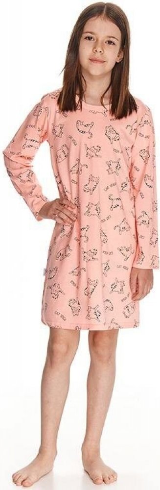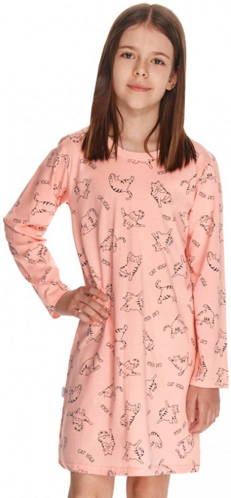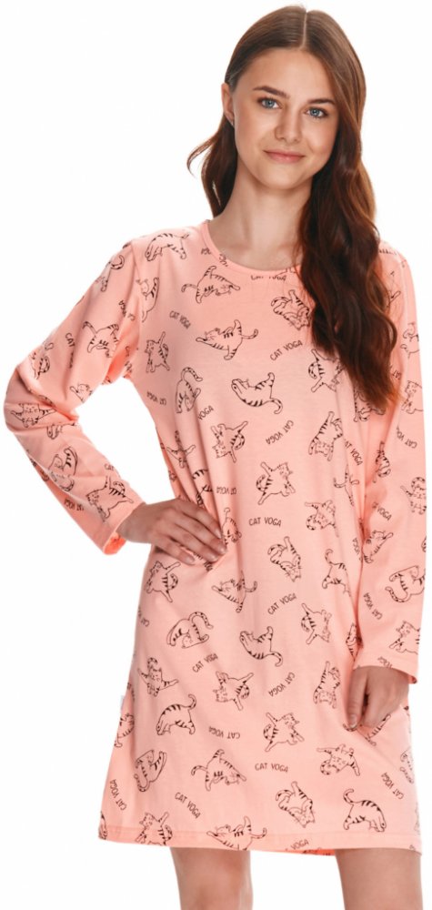 Košilka na spaní má krásný vzor s kočičkami a jemnou lososovou barvu. Noční dívčí košile je vyrobená ze 100% bavlny, takže je pohodlná a má příjemný materiál. Je s dlouhými rukávy. Výstřih má kulatý tvar. Košilka má lososovou barvu a vzor. Sladit ji můžete také s dámským pyžamem Serena nebo kojicí košilkou Linda.Vyrobeno v EU.