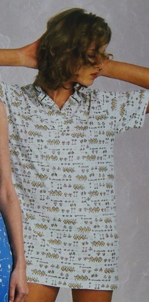 Krátká noční košile s propínací légou zdobená tiskem. Délka zadního dílu ve velikosti 152 je cca 80 cm.