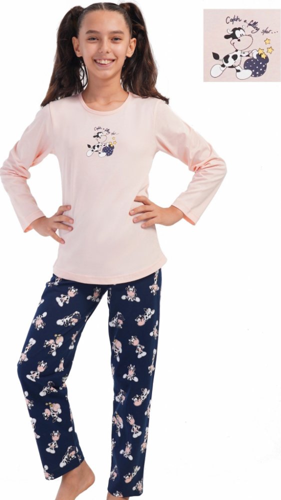 Dívčí pyžamo kouzelná i veselá kravička 1F0966 růžové