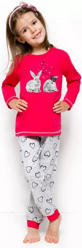 Dívčí pyžamo Zvířátka dlouhá červená