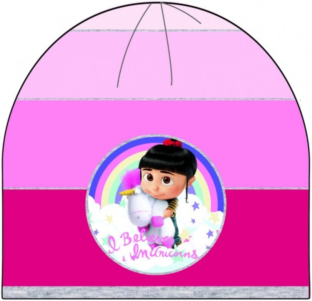 Dívčí zimní čepice v designu Mimoni, Ágnes s jednorožcem, materiál: 100% akrylové vlákno, dvojitá vrstva pro lepší tepelnou izolaci, velikost 52/54, dle obvodu hlavy, barevné provedení růžové.