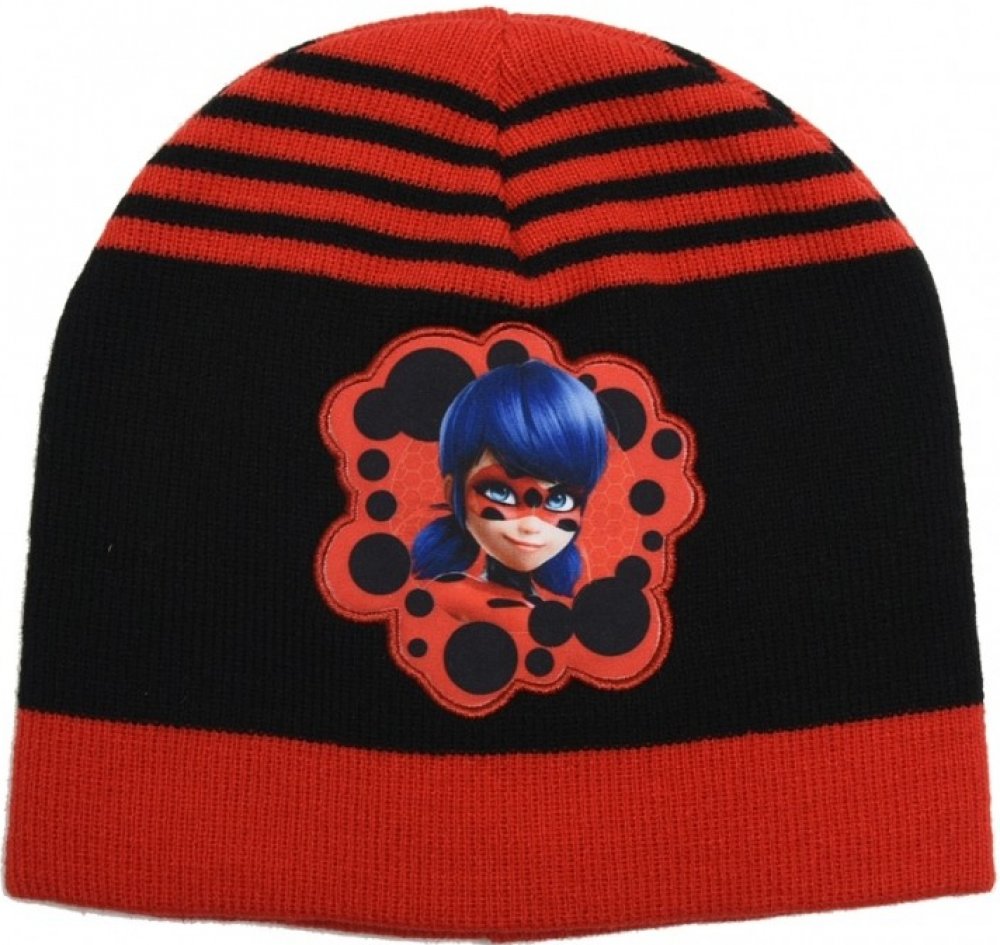 Dívčí zimní čepice v designu Kouzelná Beruška, materiál: 100% akrylové vlákno, dvojitá vrstva pro lepší tepelnou izolaci, velikost 52/54, dle obvodu hlavy, šířka čepice 21 cm, výška 20 cm, měřeno v klidu, na přední straně výšivka, barevné provedení černá s červeným lemem.
