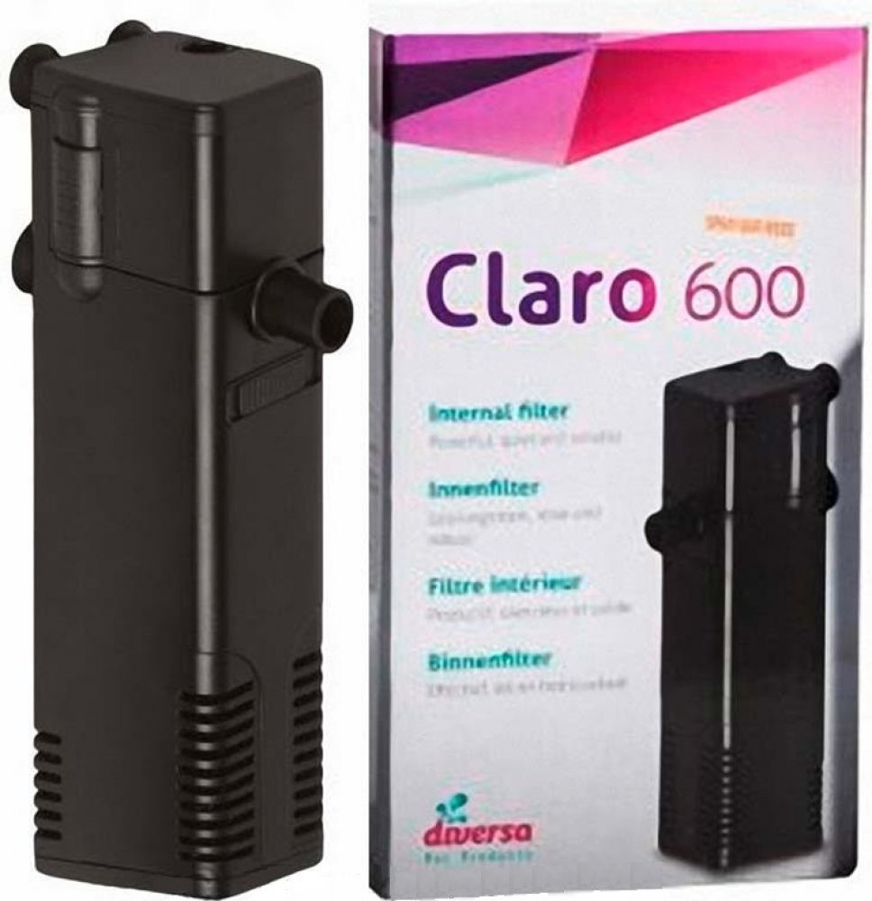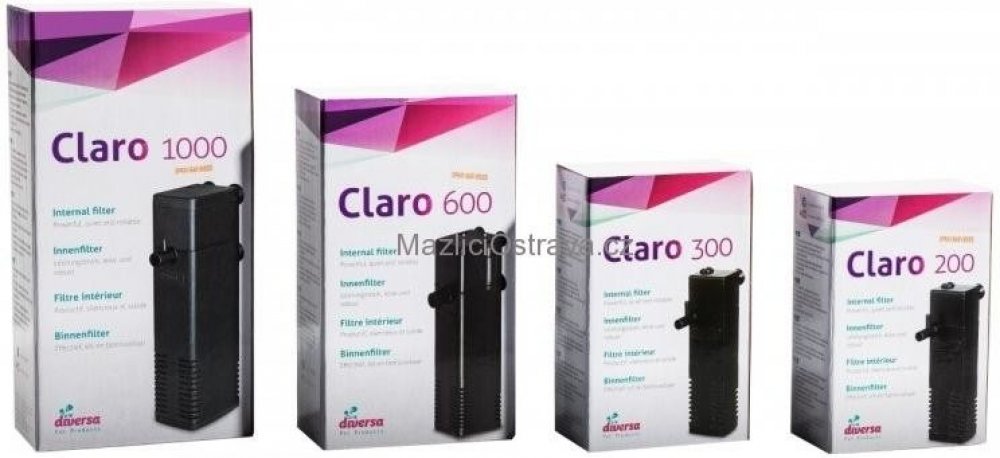 Filtry Diversa Claro se hodí k vnitřní filtraci akvárií. Čistí vodu mechanicky i biologicky přes polyuretanovou pěnu. Jsou opatřeny regulací průtoku a pomocí hadičky s ním můžeme i přivzduchovávat akvárium. Provedení filtru nenarušuje vzhled uvnitř akvária.