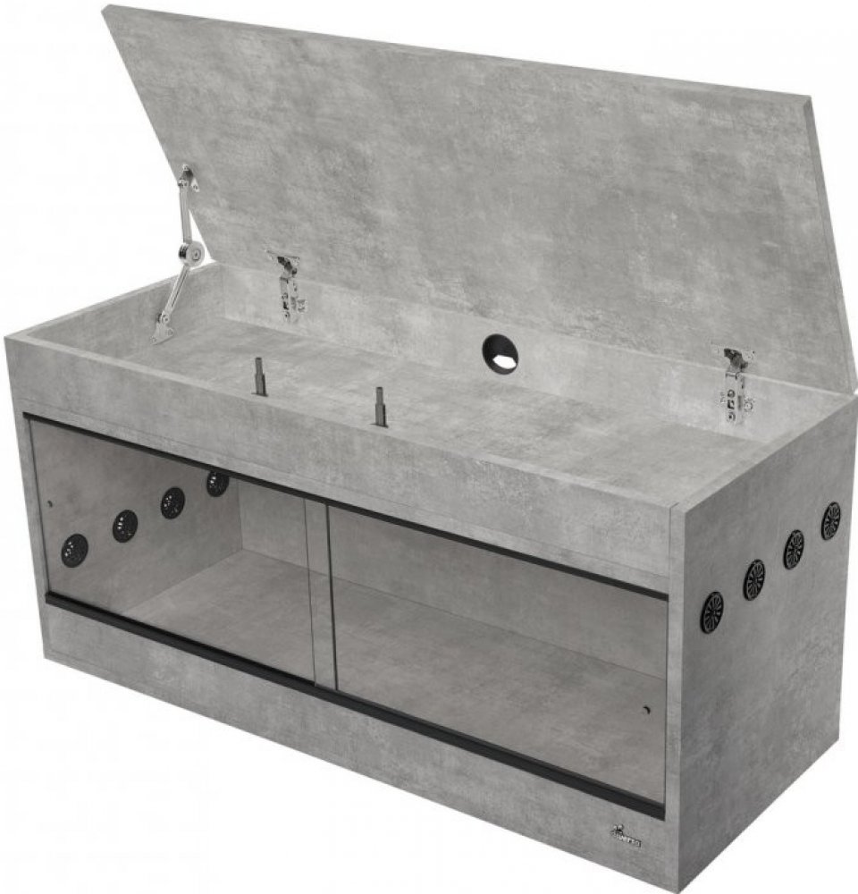 Terárium Diversa s nástavcem – promyšlené řešení pro chov suchozemských plazů Moderní terárium s praktickým nástavcem, který slouží jako dvojitý strop pro skrytou instalaci osvětlení i jako úložný prostor pro příslušenství. Skvělá volba pro chov hadů, gekonů, agamy, ježků a dalších zvířat milujících sušší prostředí. Kvalitní provedení zajišťuje stabilitu, výbornou tepelnou izolaci a dlouhou životnost. Hlavní přednosti ✅ Chytrý nástavec s úložným prostorem – Možnost uložení osvětlovací techniky + skrytý úložný prostor pro pomůcky ✅ Účinné větrání shora i zdola – PVC větrací otvory (⌀ 40 mm) zajišťují stálou cirkulaci vzduchu ✅ Pohodlné otevírání – Výklopné dvířko s mechanismem push-to-open a stabilizačním pantem ✅ Pevná konstrukce – Laminatové 18mm desky zajišťují výbornou tepelnou izolaci ✅ Snadné uchycení techniky – Stěny umožňují bezpečné přichycení i těžších prvků ✅ Design na míru – Výběr z několika barev pro snadné sladění s interiérem, další dostupné barvy: bílá , černá , dub Technické parametry Délka: 120 cm Šířka: 50 cm Výška: 72 cm Tloušťka skla: 4 mm Tloušťka desky: 18mm Materiál: Laminovaná deska Ventilace : Gravitační (zdola nahoru) Smontované: Ne Odstín: Beton (Dostupné i v černém , dubovém a bílem odstínu) Určeno pro : Hady, ježky, agamy, gekony ️ Montáž bez starostí Úspora času: Žádné návody, šroubky ani zbytečné starosti. Odborné sestavení: Montáž provedou naši zkušení technici. Precizní výsledek: Vše perfektně sedí a drží. Okamžitě připraveno: Terárium stačí umístit a je připraveno k použití. Cena montáže: 390 Kč. Doprava zdarma - Komfortní doručení až k vám domů Bezpečné doručení: Garantujeme, že vaše terárium dorazí nepoškozené a připravené k použití. ️ Přesný termín: Předem se domluvíme na termínu doručení, který vám bude nejlépe vyhovovat. Kontrola při předání: Terárium osobně doručíme, zkontrolujeme jeho stav a rádi zodpovíme vaše dotazy. Pomoc s umístěním: Pomůžeme vám terárium umístit přesně tam, kde ho chcete mít. ♻️ Ekologická služba: Po doručení odvezeme všechny obaly, aby váš prostor zůstal čistý. Cena: Doprava je ZDARMA (v základní variantě).