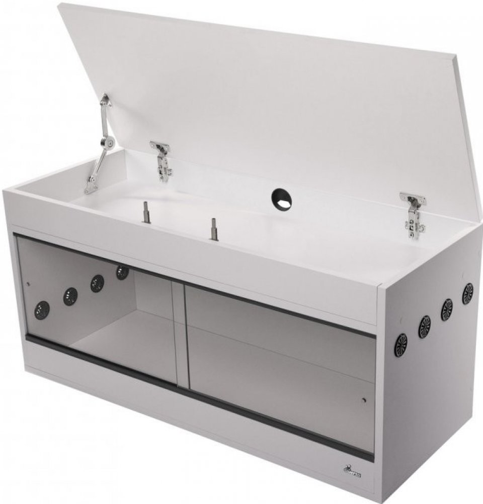 Terárium Diversa s nástavcem – promyšlené řešení pro chov suchozemských plazů Moderní terárium s praktickým nástavcem, který slouží jako dvojitý strop pro skrytou instalaci osvětlení i jako úložný prostor pro příslušenství. Skvělá volba pro chov hadů, gekonů, agamy, ježků a dalších zvířat milujících sušší prostředí. Kvalitní provedení zajišťuje stabilitu, výbornou tepelnou izolaci a dlouhou životnost. Hlavní přednosti ✅ Chytrý nástavec s úložným prostorem – Možnost uložení osvětlovací techniky + skrytý úložný prostor pro pomůcky ✅ Účinné větrání shora i zdola – PVC větrací otvory (⌀ 40 mm) zajišťují stálou cirkulaci vzduchu ✅ Pohodlné otevírání – Výklopné dvířko s mechanismem push-to-open a stabilizačním pantem ✅ Pevná konstrukce – Laminatové 18mm desky zajišťují výbornou tepelnou izolaci ✅ Snadné uchycení techniky – Stěny umožňují bezpečné přichycení i těžších prvků ✅ Design na míru – Výběr z několika barev pro snadné sladění s interiérem, další dostupné barvy: černá , dub , beton Technické parametry Délka: 120 cm Šířka: 50 cm Výška: 72 cm Tloušťka skla: 4 mm Tloušťka desky: 18mm Materiál: Laminovaná deska Ventilace : Gravitační (zdola nahoru) Smontované: Ne Odstín: Bílá (Dostupné i v dubovém , betonovém a černém odstínu) Určeno pro : Hady, ježky, agamy, gekony ️ Montáž bez starostí Úspora času: Žádné návody, šroubky ani zbytečné starosti. Odborné sestavení: Montáž provedou naši zkušení technici. Precizní výsledek: Vše perfektně sedí a drží. Okamžitě připraveno: Terárium stačí umístit a je připraveno k použití. Cena montáže: 390 Kč. Doprava zdarma - Komfortní doručení až k vám domů Bezpečné doručení: Garantujeme, že vaše terárium dorazí nepoškozené a připravené k použití. ️ Přesný termín: Předem se domluvíme na termínu doručení, který vám bude nejlépe vyhovovat. Kontrola při předání: Terárium osobně doručíme, zkontrolujeme jeho stav a rádi zodpovíme vaše dotazy. Pomoc s umístěním: Pomůžeme vám terárium umístit přesně tam, kde ho chcete mít. ♻️ Ekologická služba: Po doručení odvezeme všechny obaly, aby váš prostor zůstal čistý. Cena: Doprava je ZDARMA (v základní variantě).