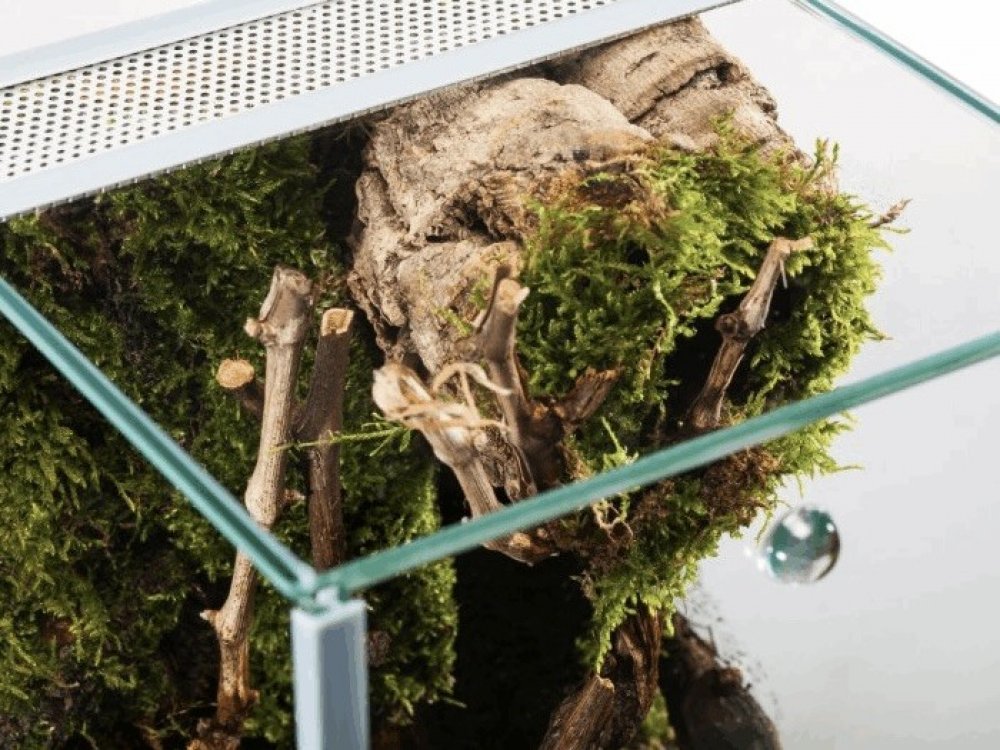 Malé terárium uzpůsobené pro chov pavouků, cvrčků, brouků apod.