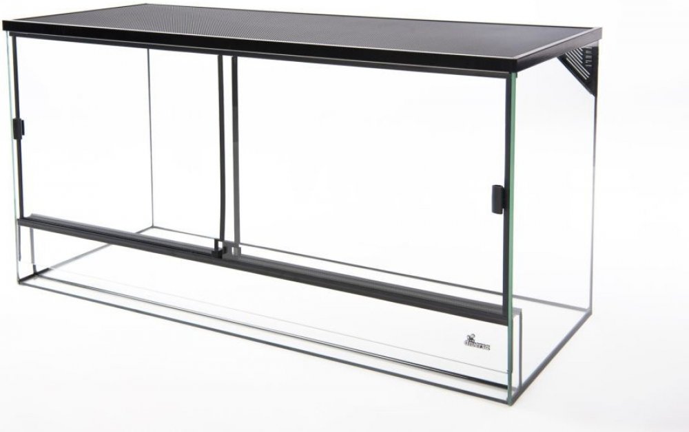Jedná se o návrh vycházející ze standardních skleněných terárií s posuvnými dveřmi, navíc opatřených zámkem a horním větráním v podobě hliníkového rámu se síťovinou . Terárium má také větrání pod dvířky, plastové úchytky na otvírání dveří a kabelovou průchodku. Díky použití černých detailů a černého silikonu působí terárium velmi esteticky a elegantně.